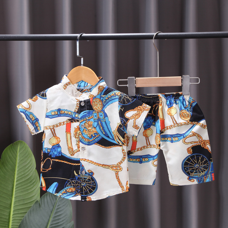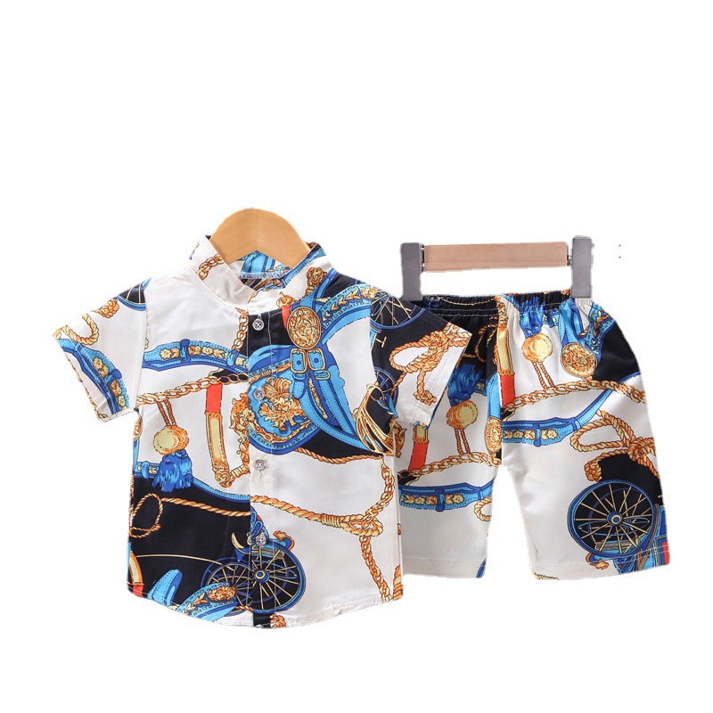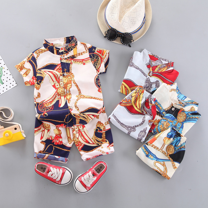 Летний детский рубашечный костюм для мальчиков лето От 0 до 4 лет футболка с коротким рукавом для мальчиков из двух частей детская одежда из Юго-Восточной Азии оптом