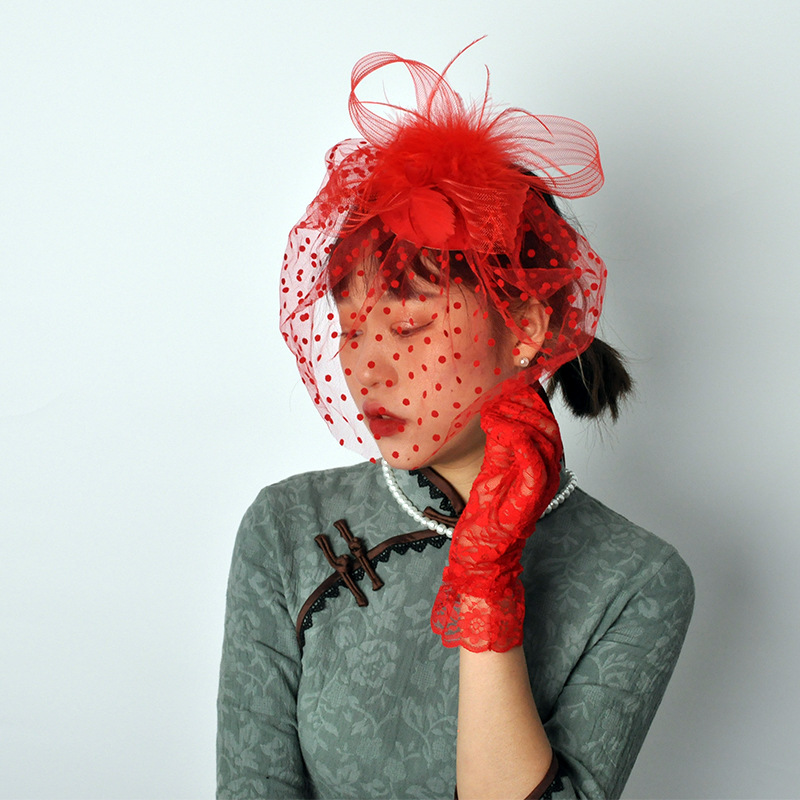 Ретро Танцевальная вечеринка Cheongsam Аксессуары для платья сетчатая шляпа перчатки костюм Европейская и американская светская львица перья покрытие лица аксессуары для волос костюм
