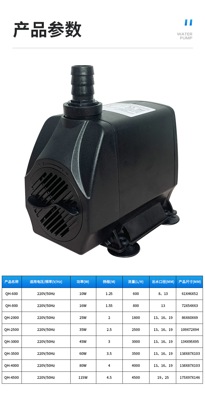 600L-10W; 800L-16W; 2000L-25W; 2500L-35W; 3000L-45W; 3500L-60W; 4000L-80W; 4500L-115W