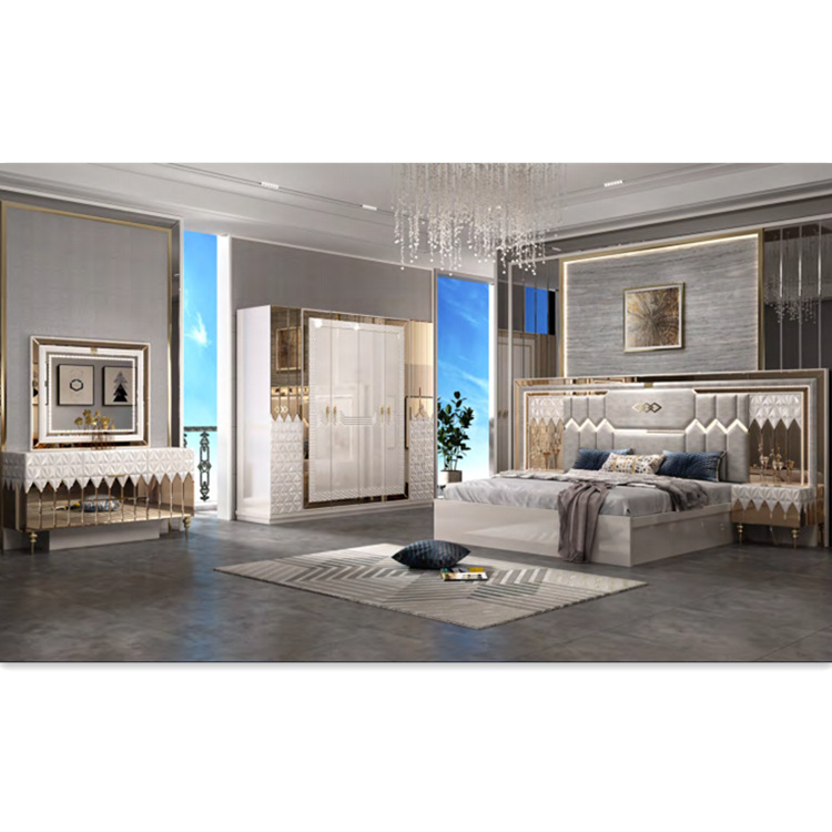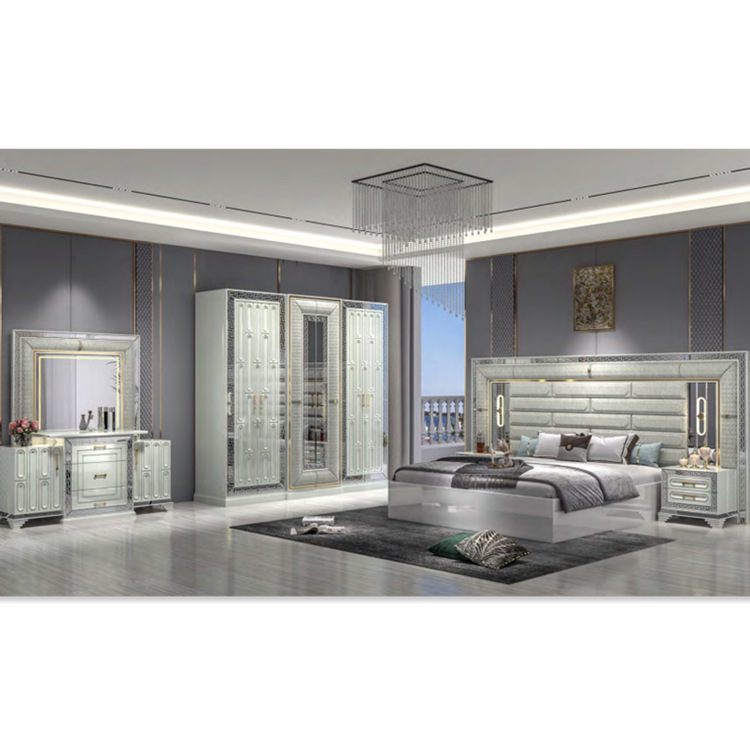 (床、两个床头柜、衣柜以及梳妆台)