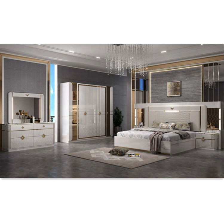 Панель прямых продаж с фабрики, современный простой 1.8m двуспальная свадебная кровать для главной спальни, комплект мебели из пяти предметов