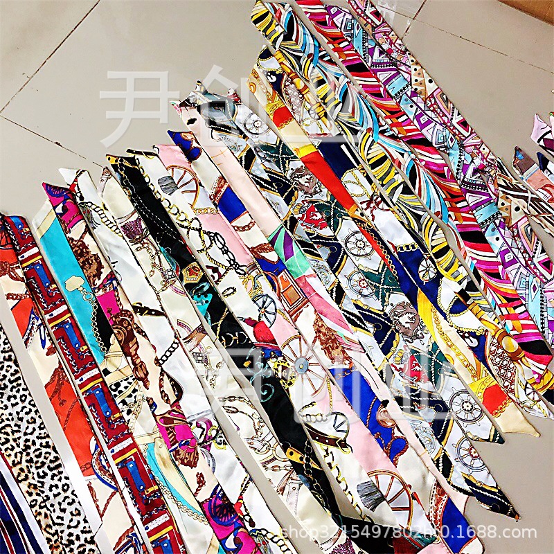 Корейский стиль креативный тонкий длинный шелковый шарф стюардесса Лук Шелковый шарф сумка украшение маленький шелковый шарф женский шарф небольшой подарок
