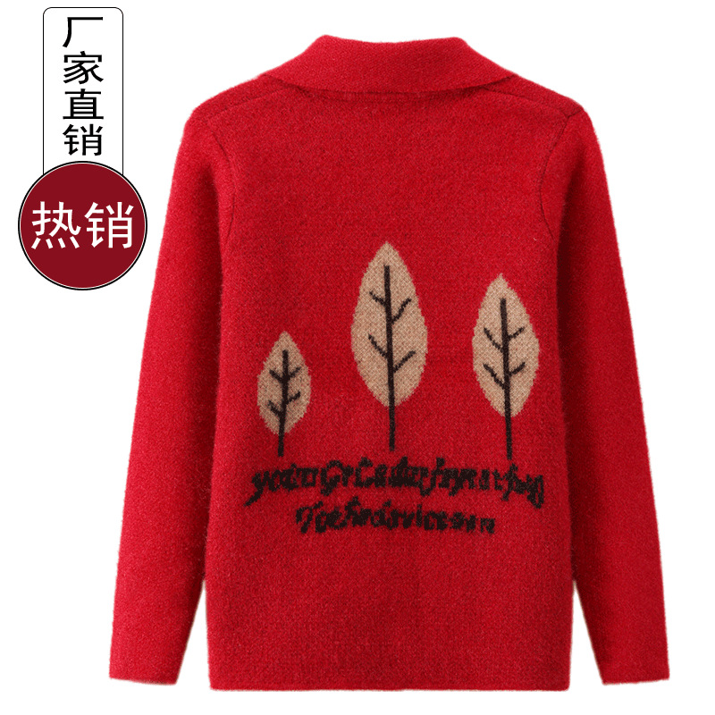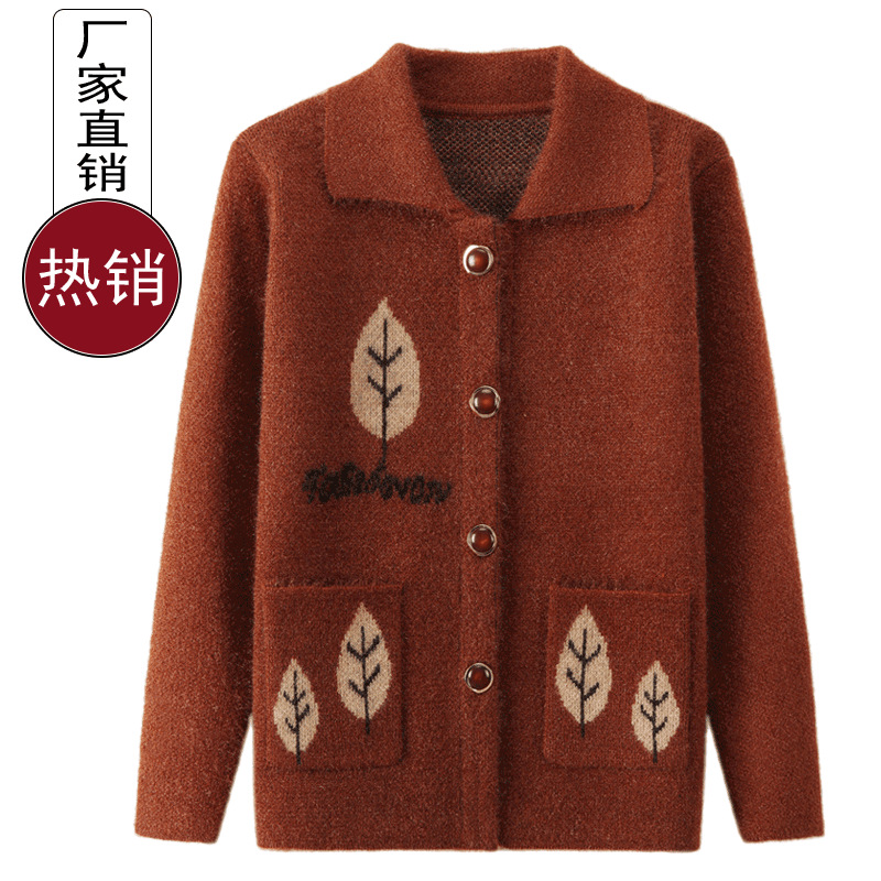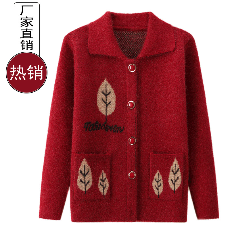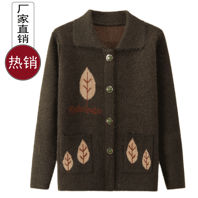 Пальто для бабушки с принтом, весна-осень, женский свободный вязаный свитер с лацканами для женщин среднего и пожилого возраста, с длинными рукавами, кардиган для матери