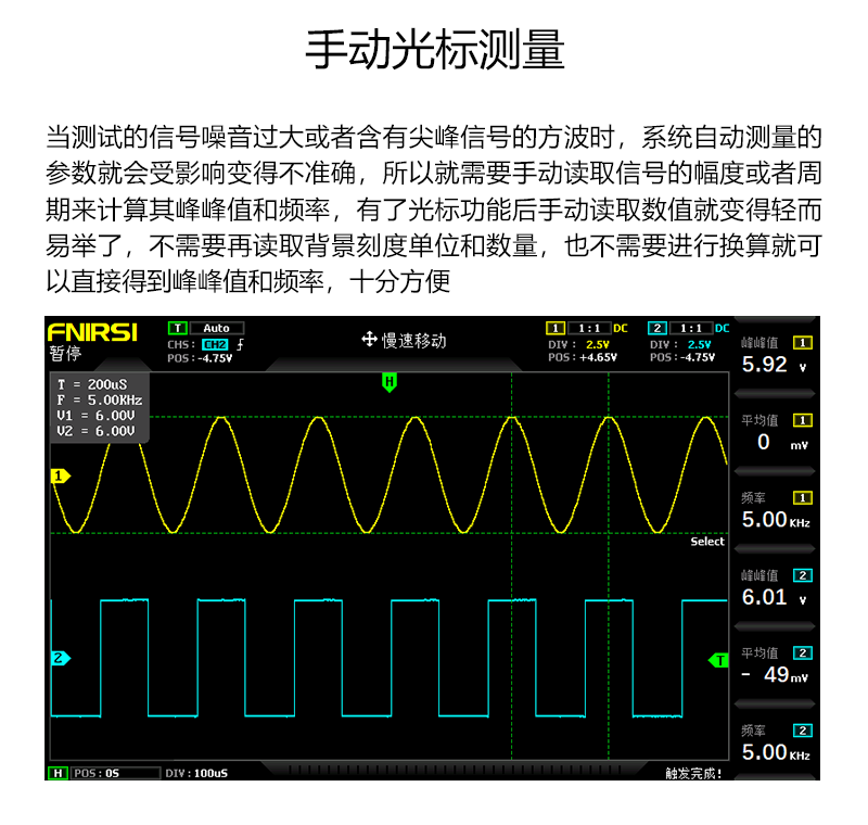 9:Cursor measurement function, it is convenient to manually measure the period and frequency and voltage