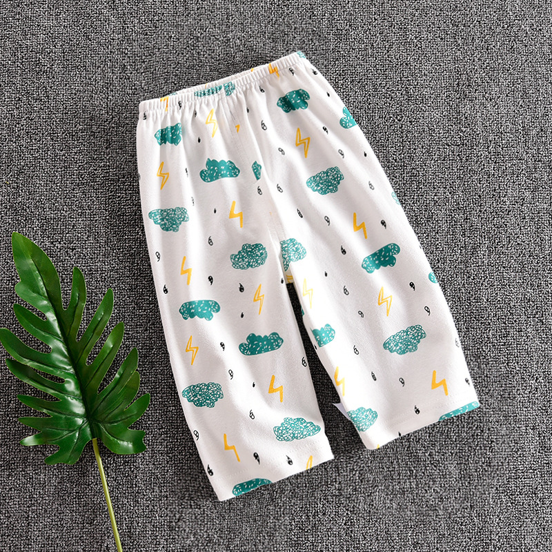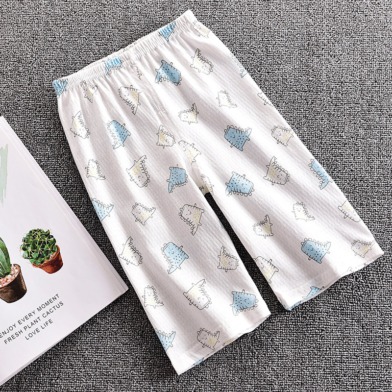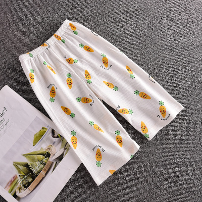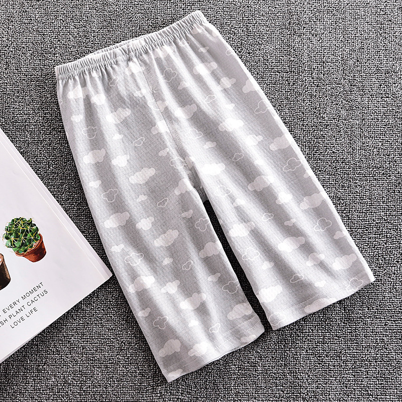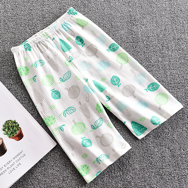 Детские Брюки-Капри, летние тонкие пижамные брюки для мальчиков и девочек, свободные тонкие хлопковые сетчатые с открытой промежностью