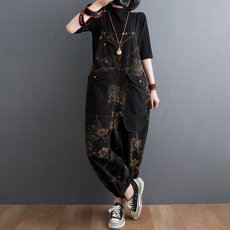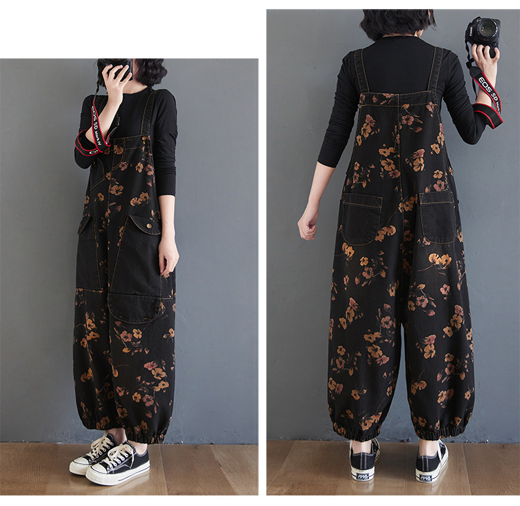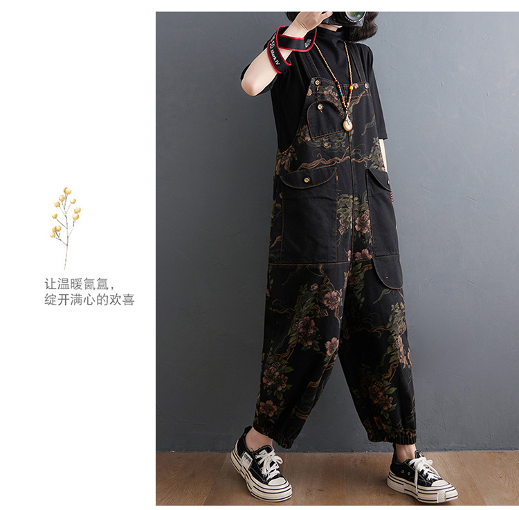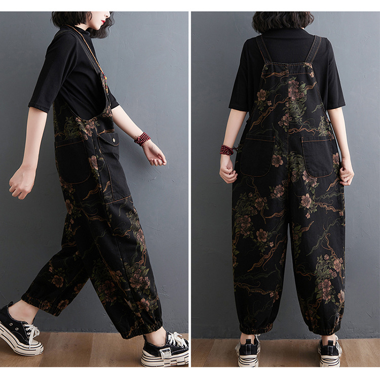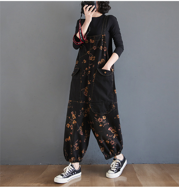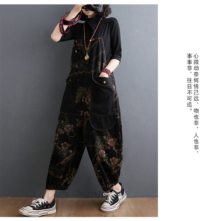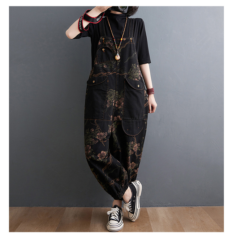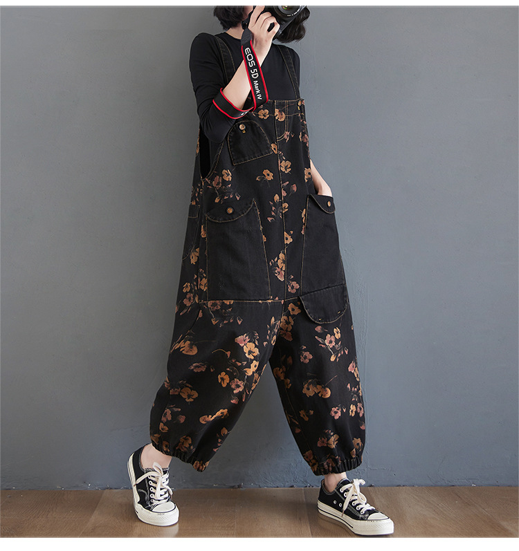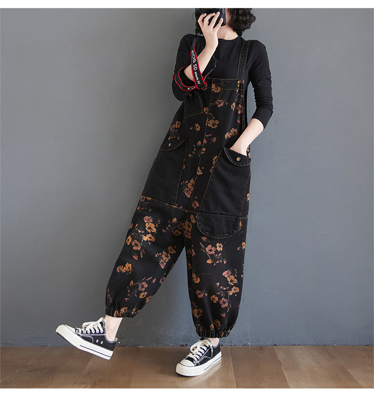 Женские джинсовые брюки с принтом большого размера женские весенние и осенние новые свободные большие карманы повседневная мода укороченные брюки