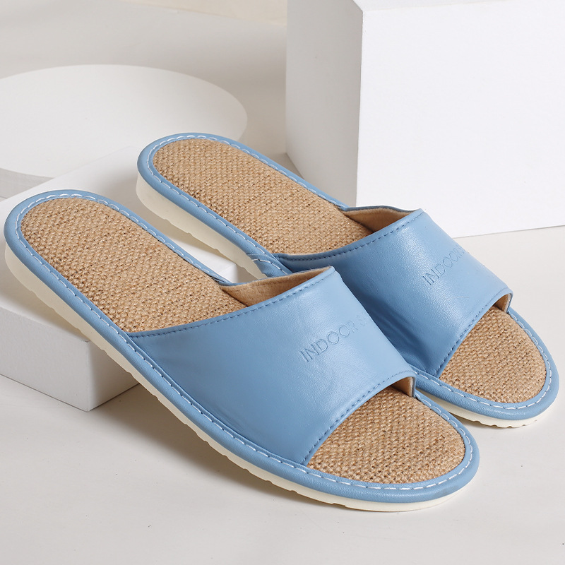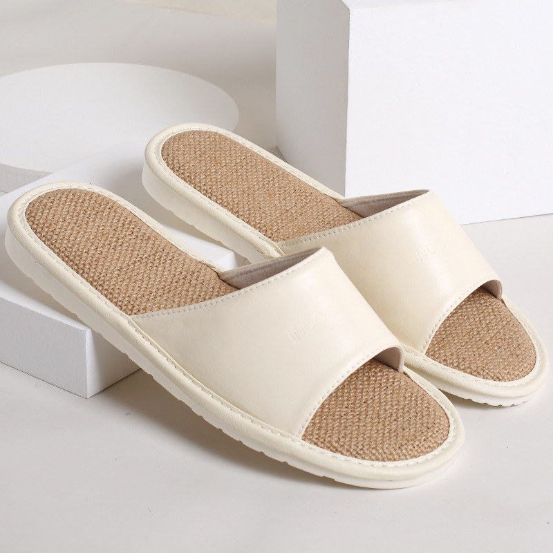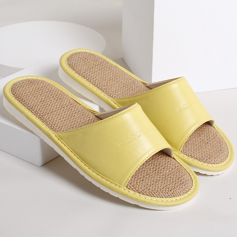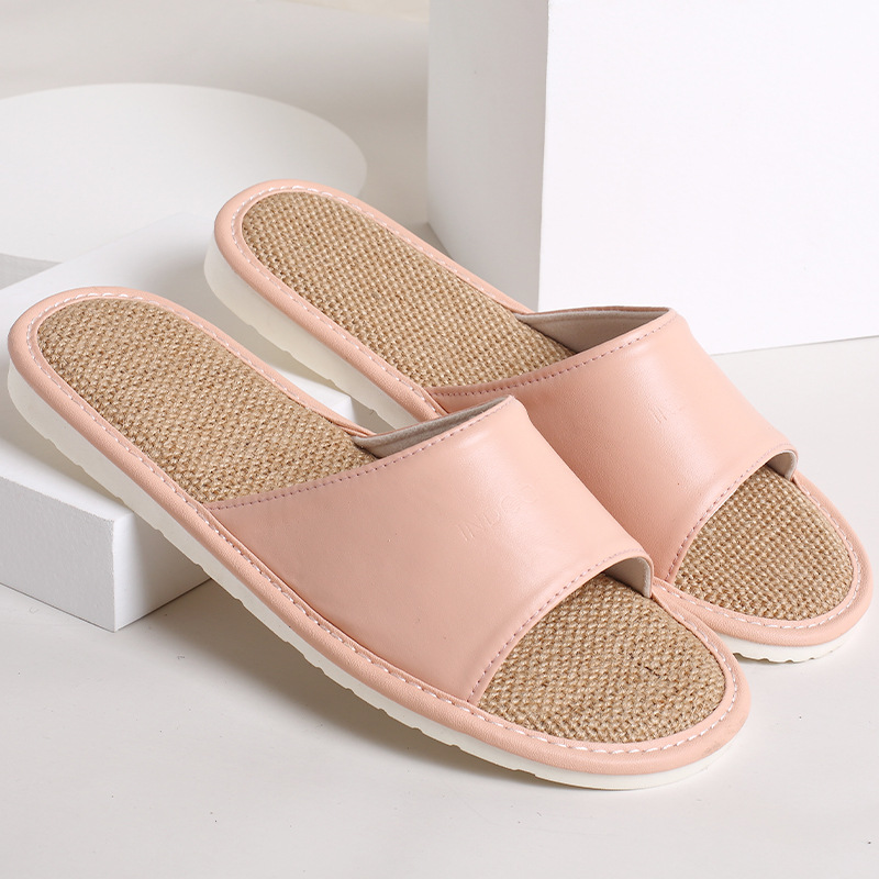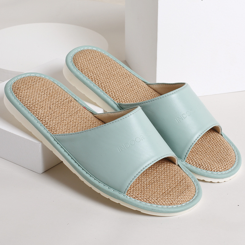 Домашние кожаные тапочки летняя женская пара комнатные домашние четыре сезона льняные кожаные холодные тапочки мужские бытовые противоскользящие оптом