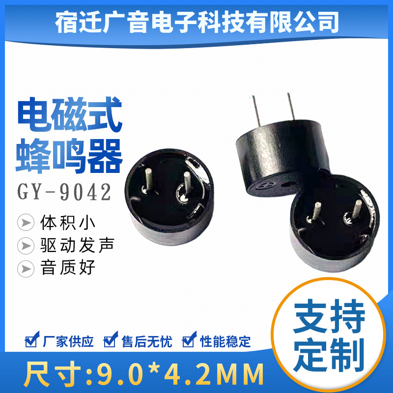 Пассивный экологичный высокотемпературный зуммер 9042, 16 Ом, длина выводов 4,3 мм, хорошая стабильность звука.