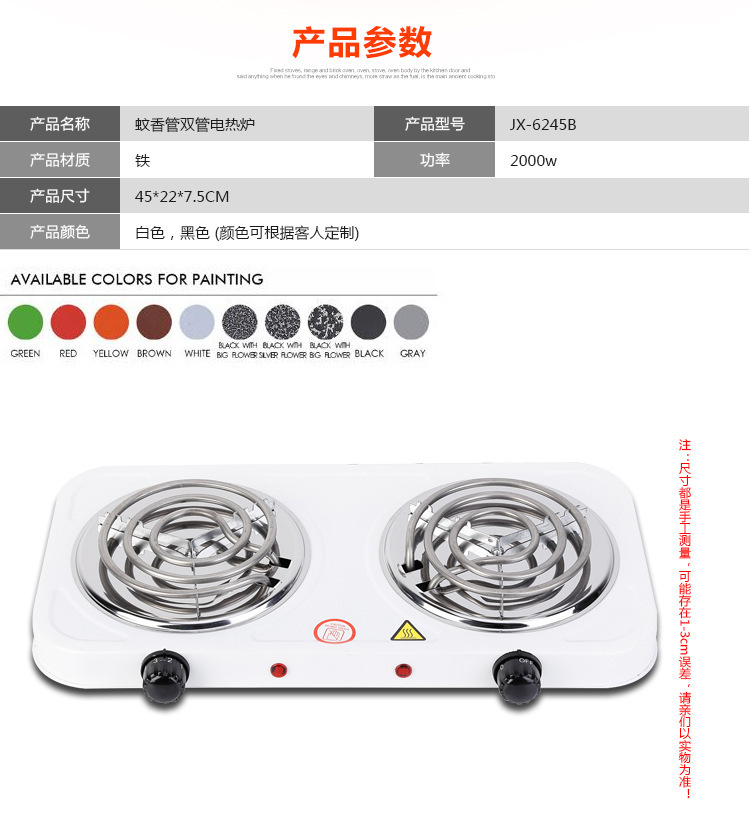 Белая одинарная трубка мощностью 500 Вт.; Белая одиночная печь мощностью 1000 Вт.; Белая двойная печь мощностью 2000 Вт.; Белый одиночный диск мощностью 500 Вт.; Белый одиночный диск мощностью 1000 Вт.; Белый двойной диск мощностью 2000 Вт.; Черная одиночная печь мощностью 1000 Вт.; Черная двойная печь мощностью 2000 Вт.; Точечная углеродистая печь мощностью 500 Вт (круглая и плоская вилка случайным образом); Черный двойной диск мощностью 2000 Вт.; Черный одиночный диск мощностью 1000 Вт.; Китайский красный; темная ночь; бежевый; изумруд; персиковый порошок; Китайский красный + кофейник; Темная ночь черная + кофейник; Бежевый + кофейник; Изумруд + кофейник; Персиковый порошок + кофейник