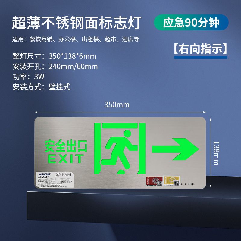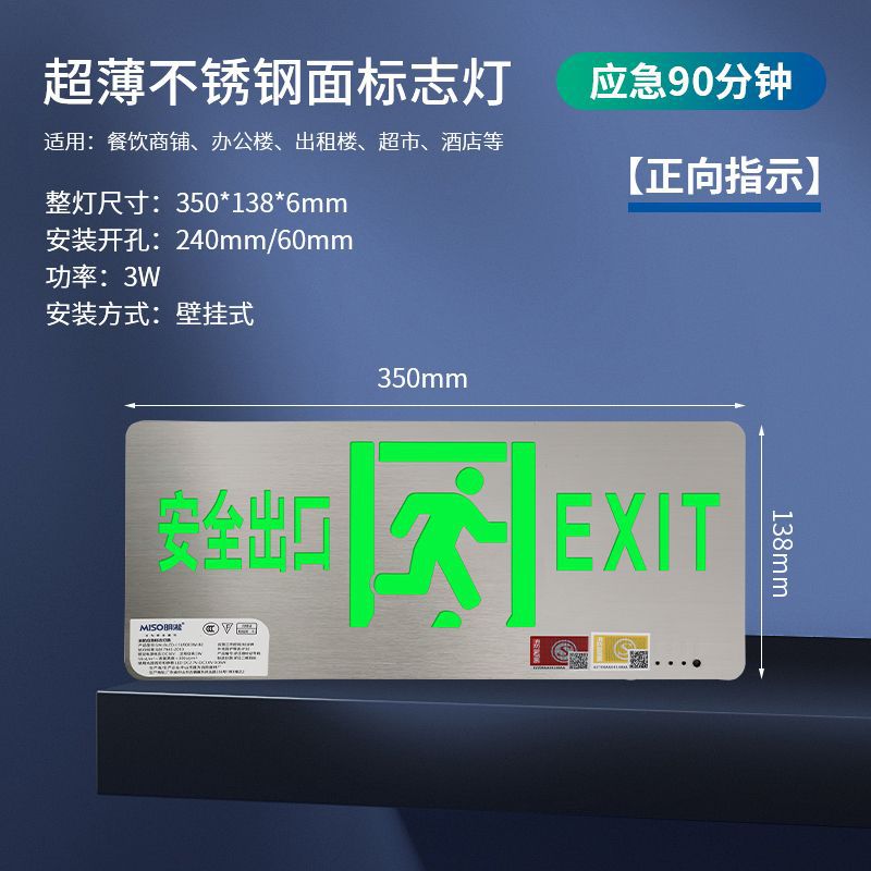 Световой индикатор из нержавеющей стали с матовой отделкой, знак аварийного выхода, световой знак пожарной безопасности, световой знак эвакуации, знак безопасности для выхода на улицу