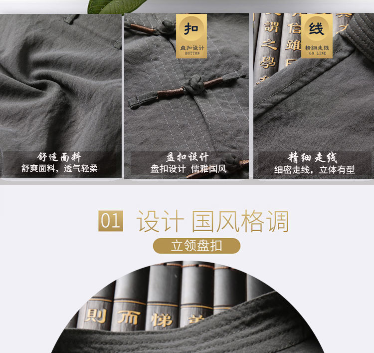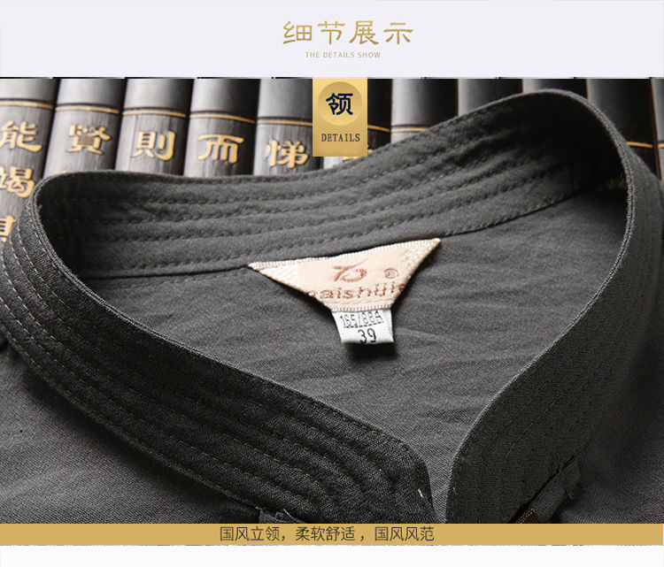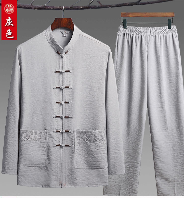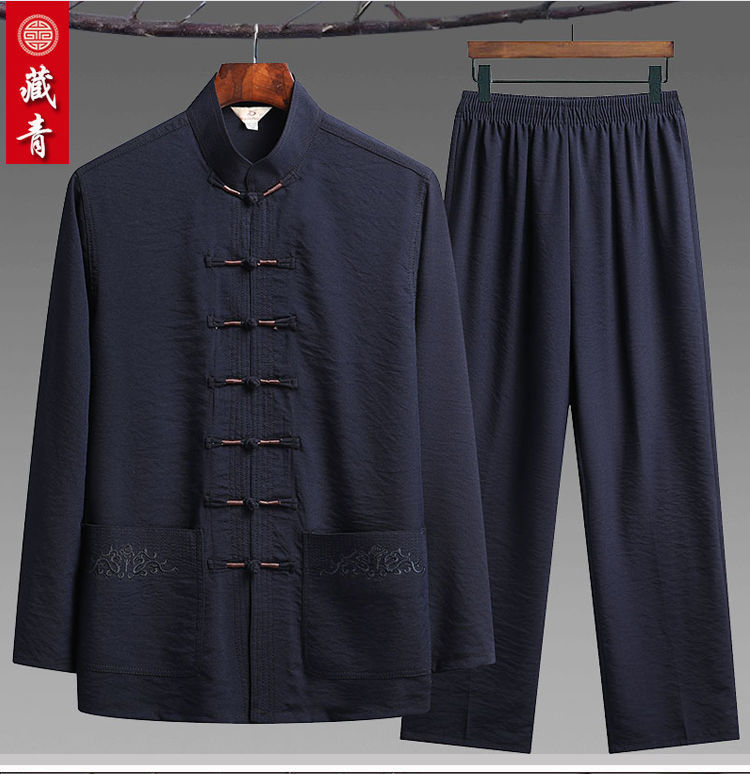 Люди среднего и пожилого возраста костюм для мужчин с длинными рукавами из хлопка и льна