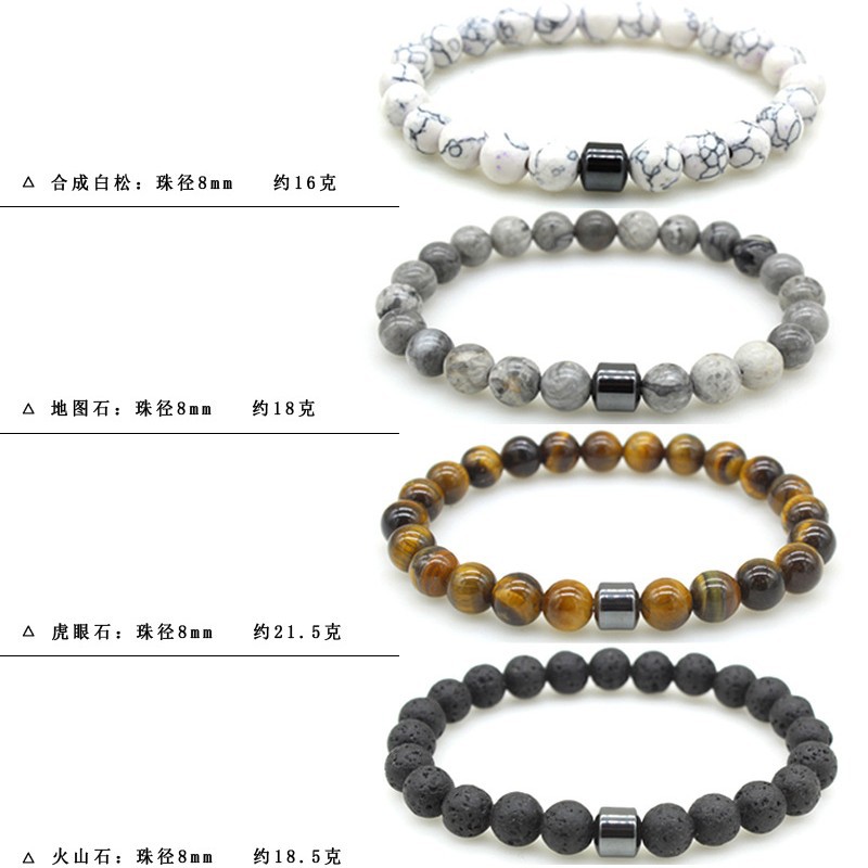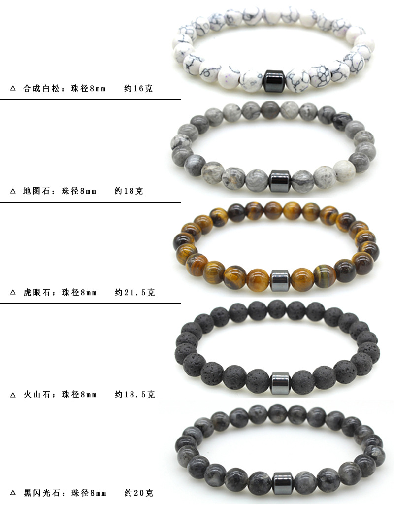 Новый браслет из бисера с тигровым глазом, вулканическим камнем и черным камнем, с магнитной застежкой, для трансграничной торговли на Amazon.