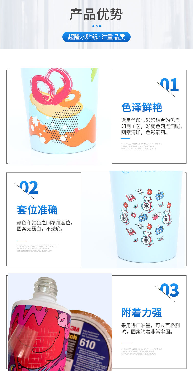 Производитель по индивидуальному заказу с рисунками и образцами, наклейками для воды, пластиковыми стаканчиками для воды, керамической цветочной бумагой, стеклянными наклейками из нержавеющей стали по индивидуальному заказу.