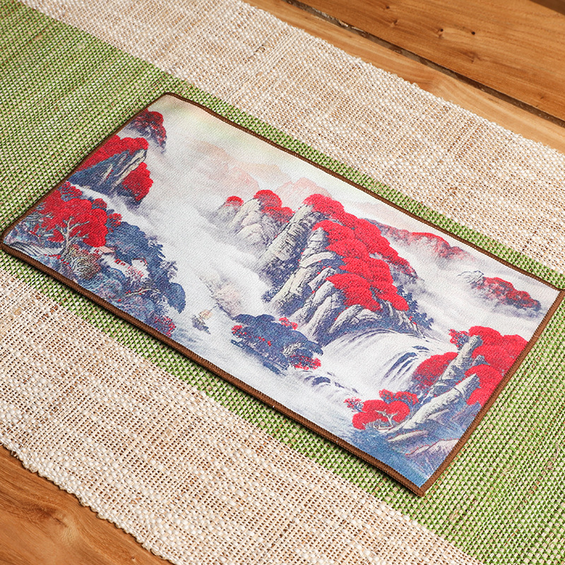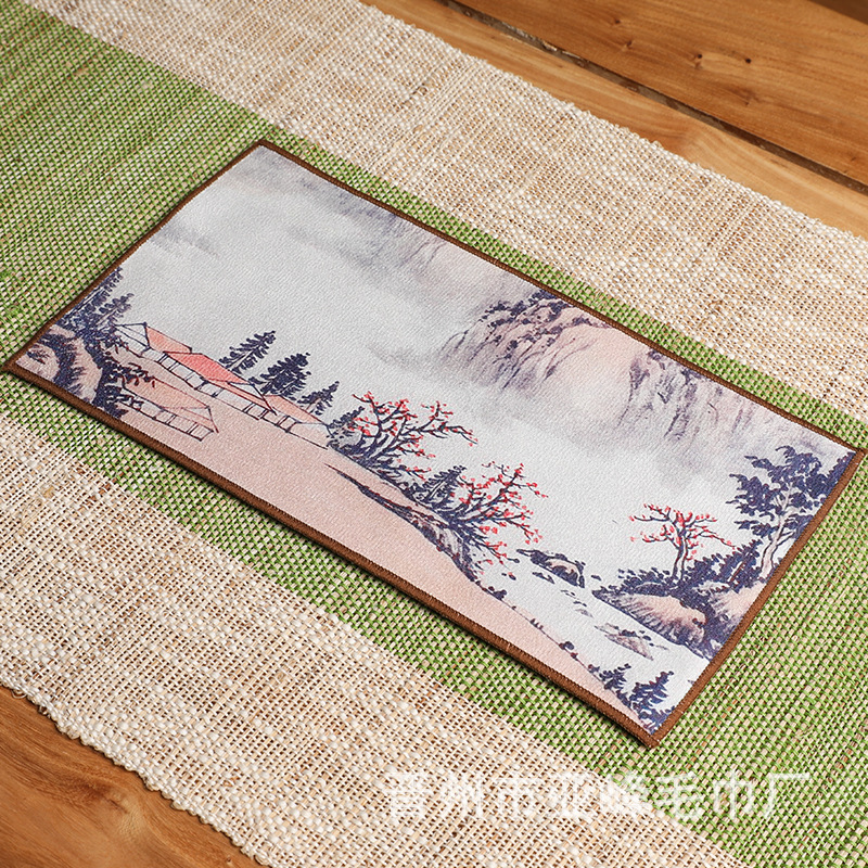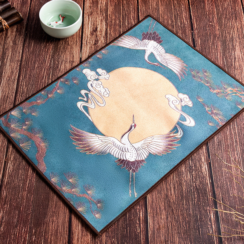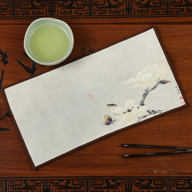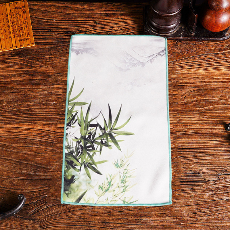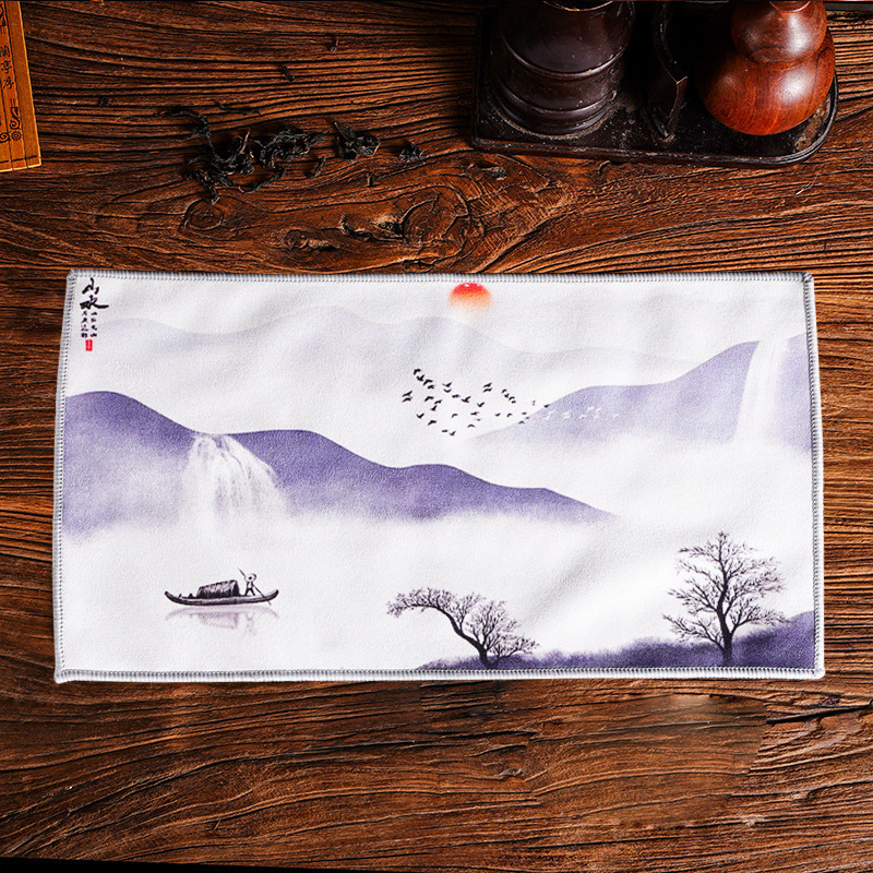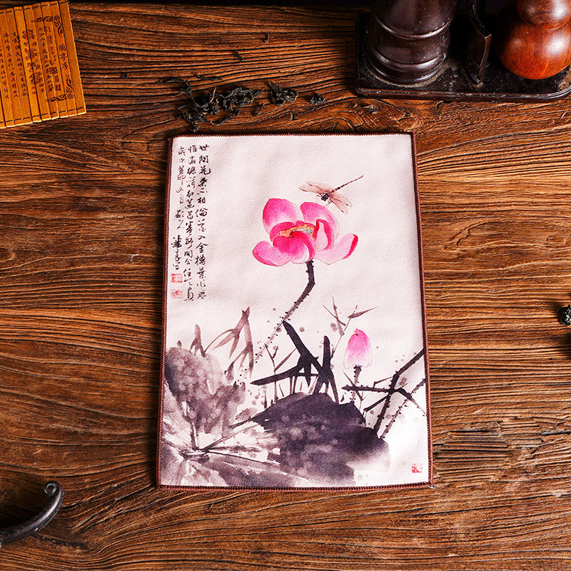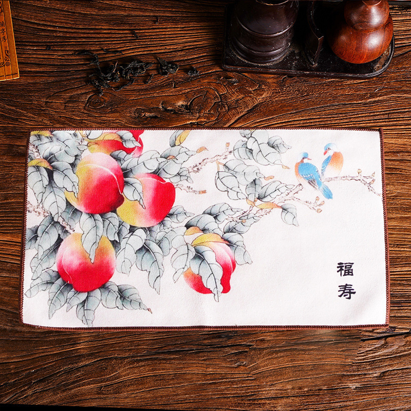 Оптовая продажа замшевых чайных салфеток с индивидуальным логотипом, утолщенных, впитывающих, квадратной формы, для защиты от горячих чайников, с рисунком в китайском стиле.