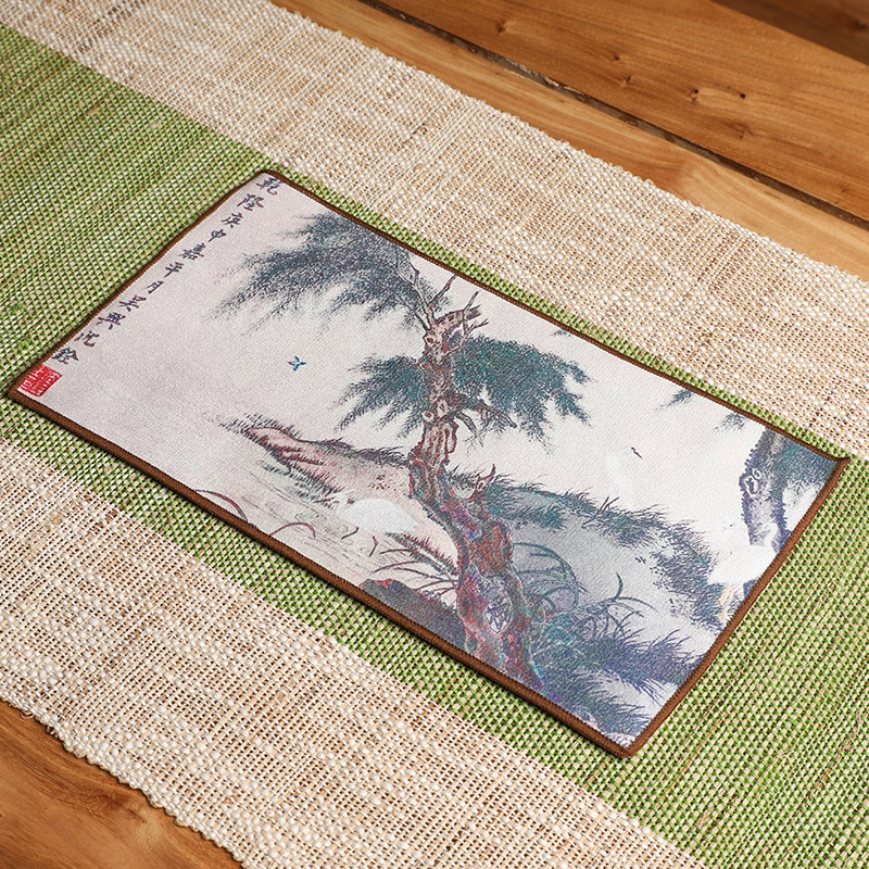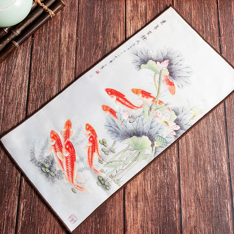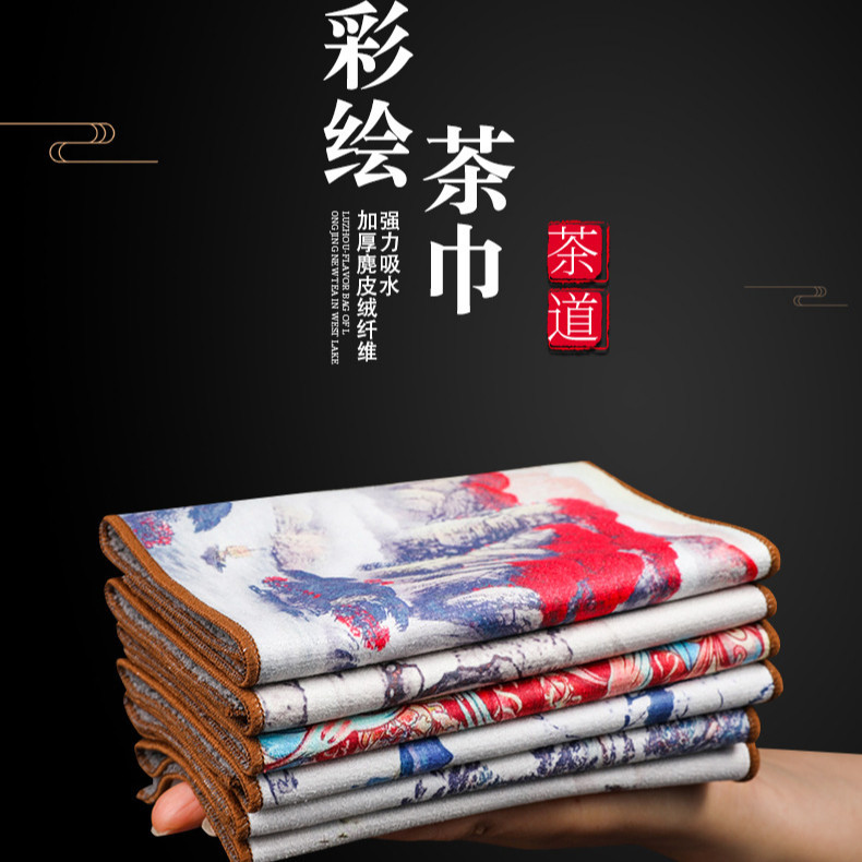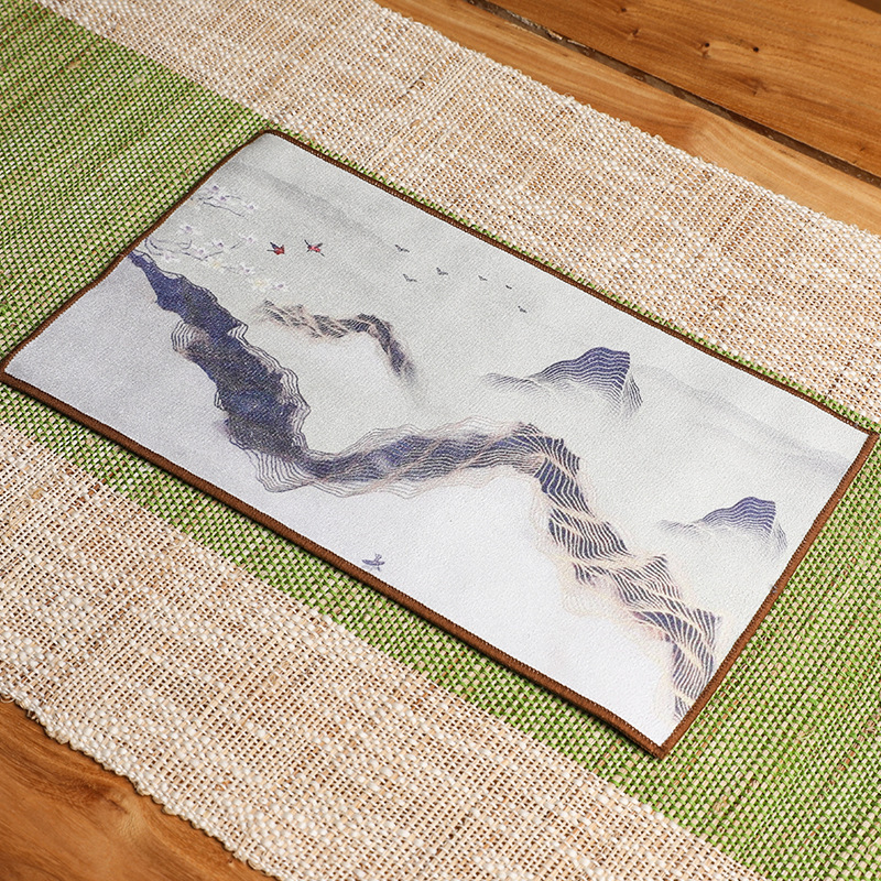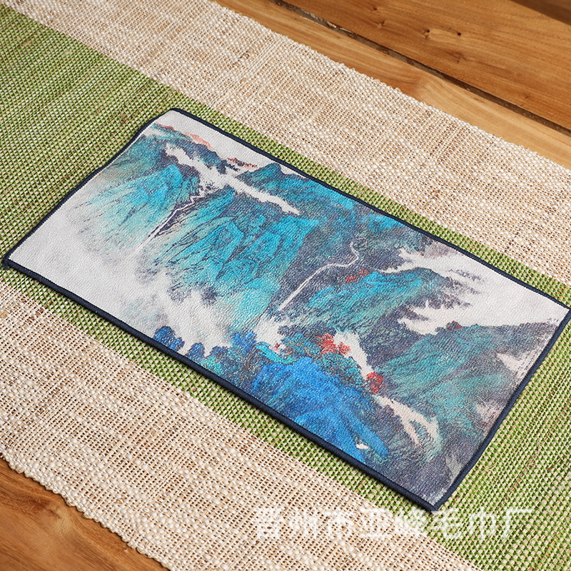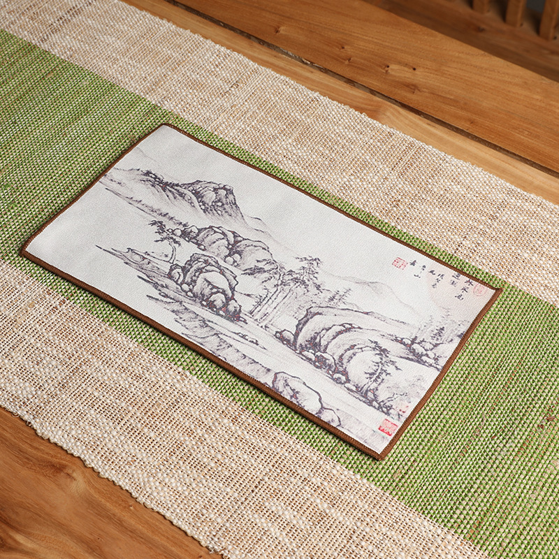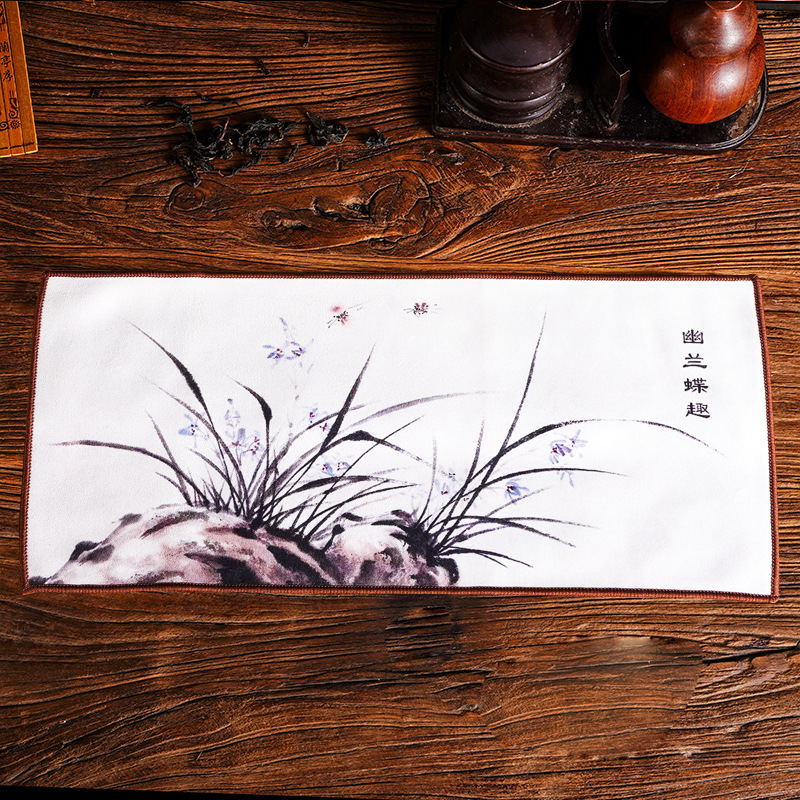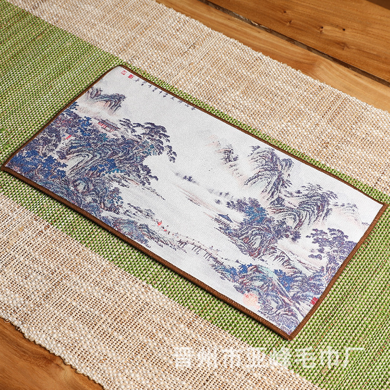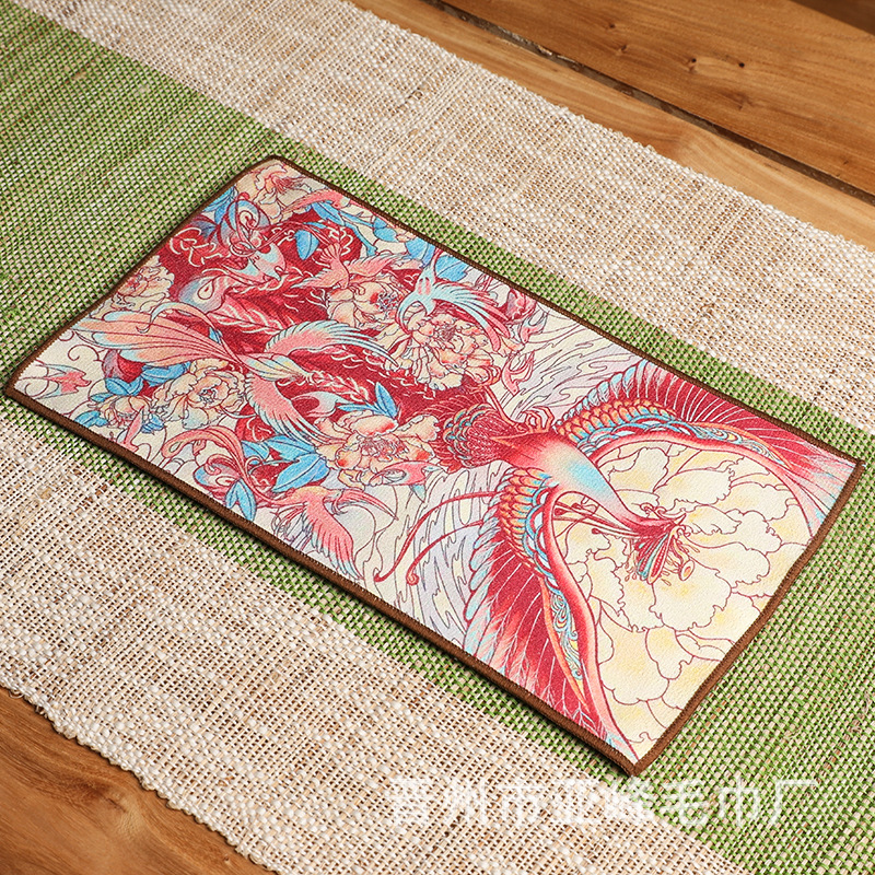 Оптовая продажа замшевых чайных салфеток с индивидуальным логотипом, утолщенных, впитывающих, квадратной формы, для защиты от горячих чайников, с рисунком в китайском стиле.