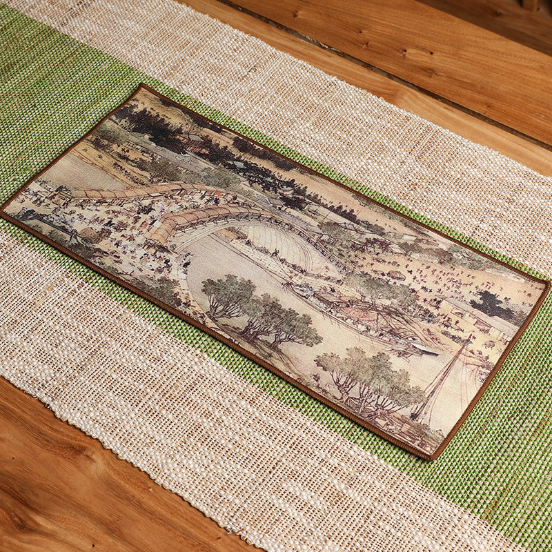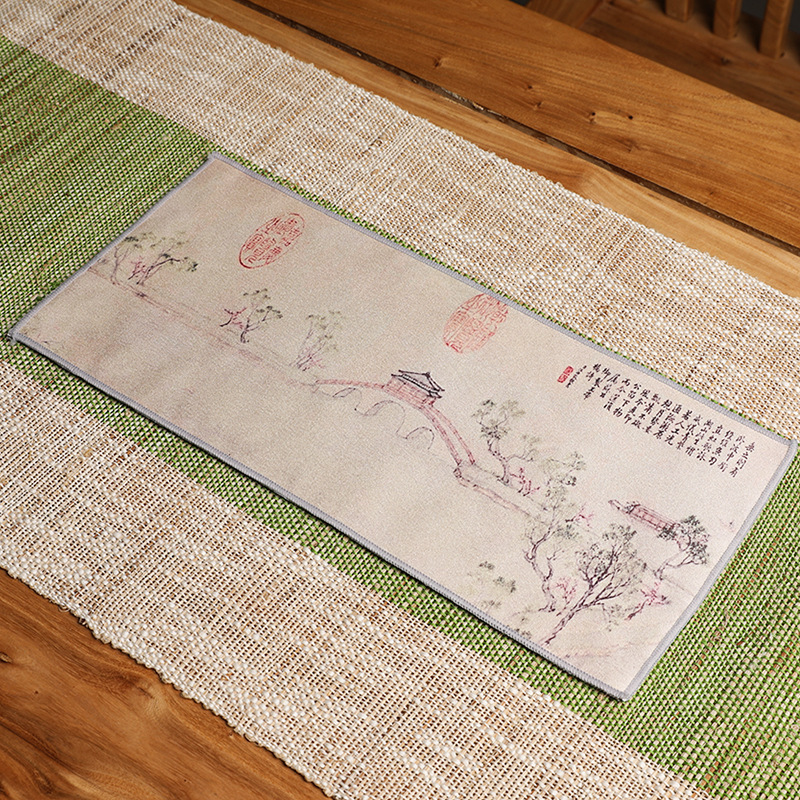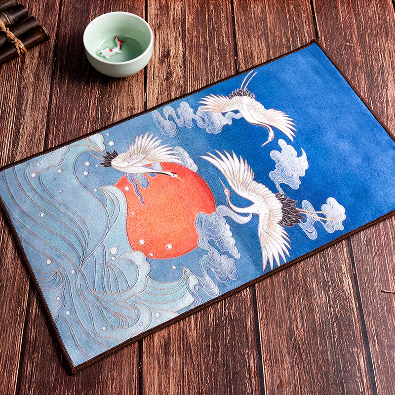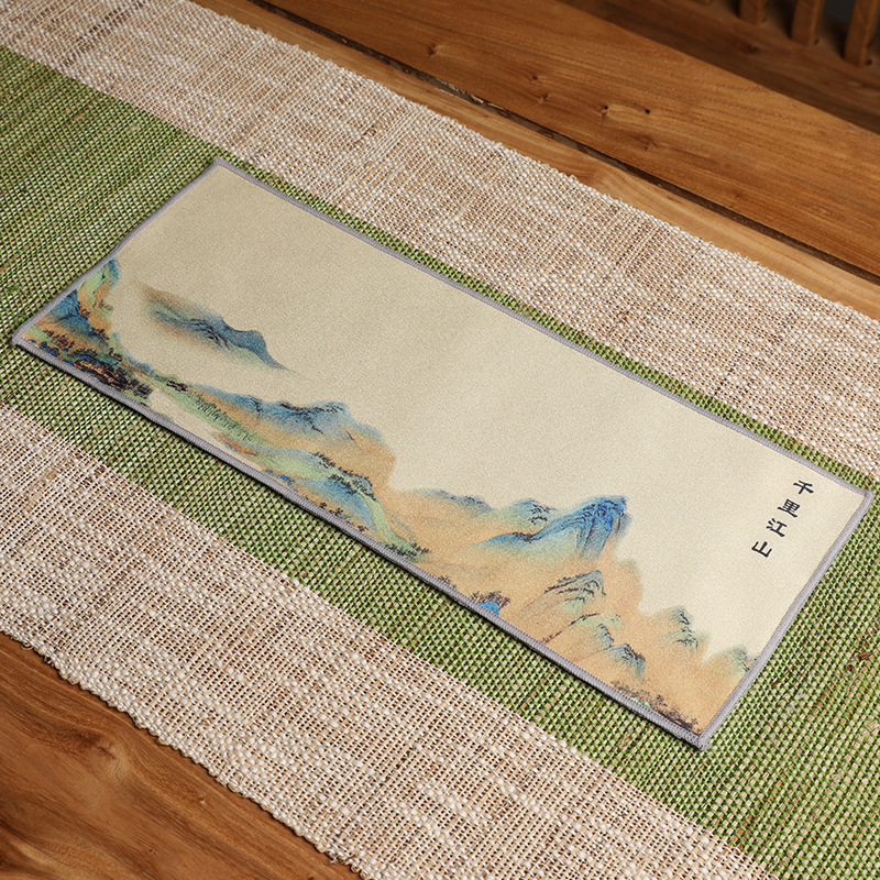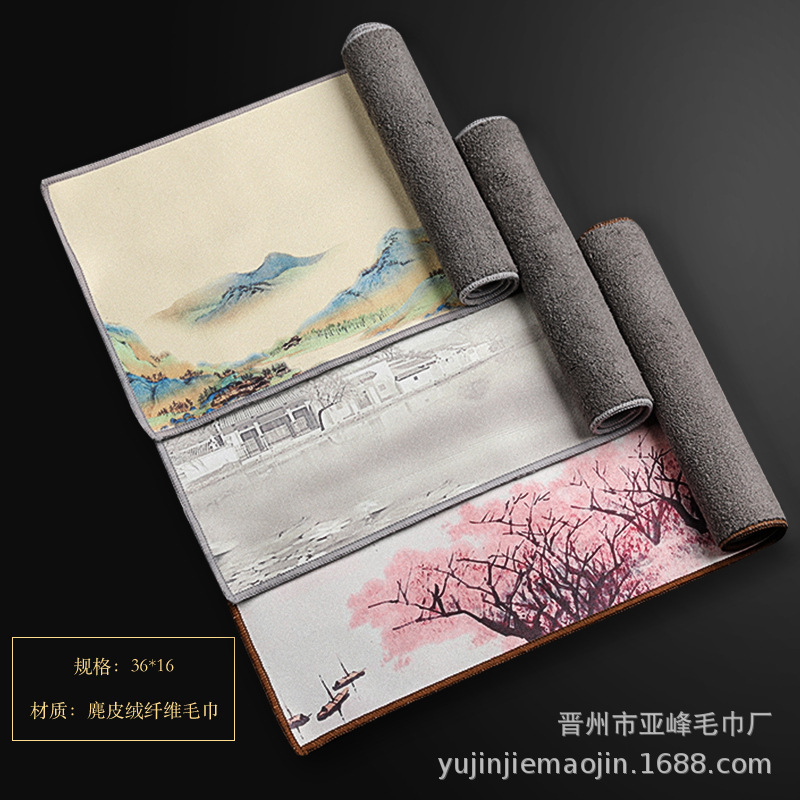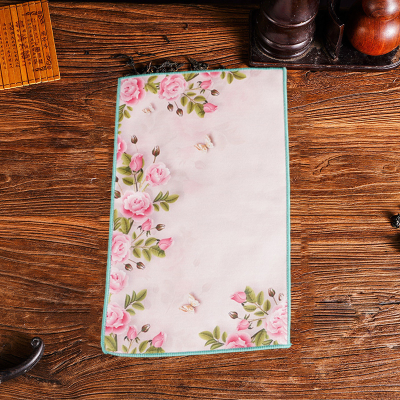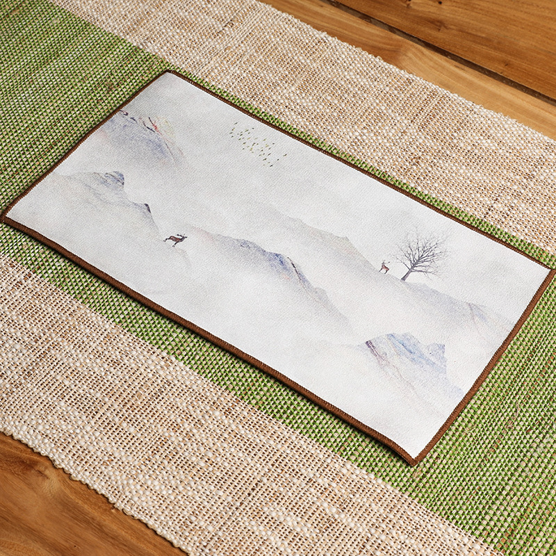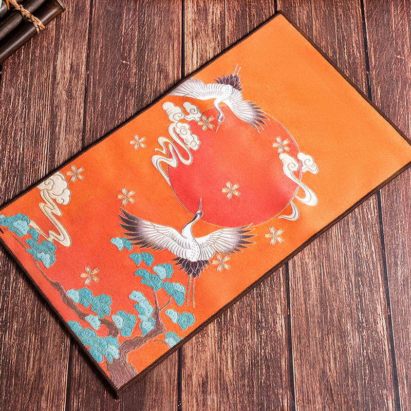 Оптовая продажа замшевых чайных салфеток с индивидуальным логотипом, утолщенных, впитывающих, квадратной формы, для защиты от горячих чайников, с рисунком в китайском стиле.
