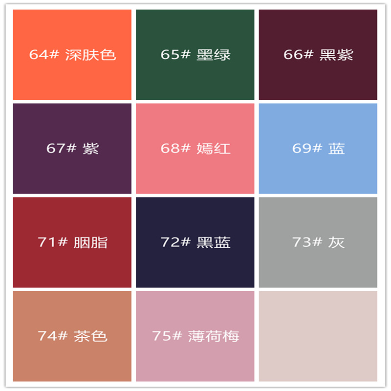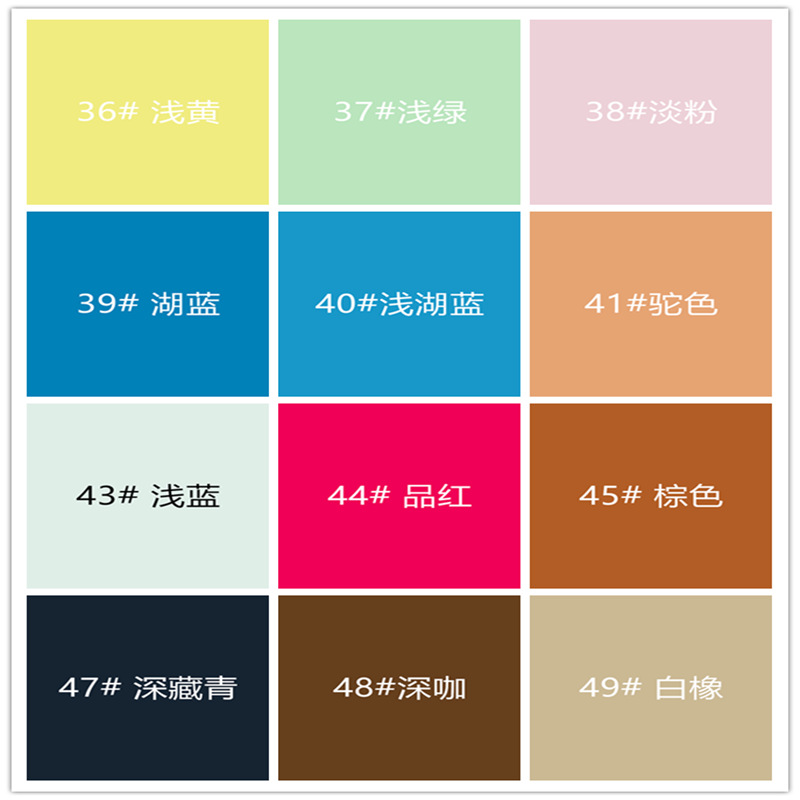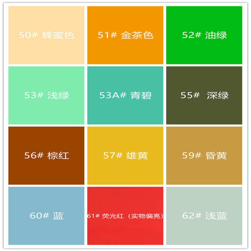 Посмотрите на качество, сфотографировать образцы риса, все случайные поставки, унифицированные 2 юаня за метр; 3 # синий драгоценный камень; 4 # изумрудно-зеленый; 5 # глубокий порошок; 6 # люминофоры; 7 # оранжевый; 8 # Цитрусовый цвет; 9 # глубокий кофе; 10 # флуоресцентный зеленый; 12 # красный фиолетовый; 13 # Бен Бай; 14 # отбеливание; 15 # порошок; 16 # красное вино; 16 # глубокое вино; 17 # чернильный серый; 18 # кровавые зубы; 19 # желтый; 20 # арбуза красный; 20A # светло-красный арбуза; 20B#; 22; 23; 24; 25; 26; 27; 28; 29; 30; 31; 32; 33; 35; 36-49; 50-62; 64-75; 76-81; 1 большой красный