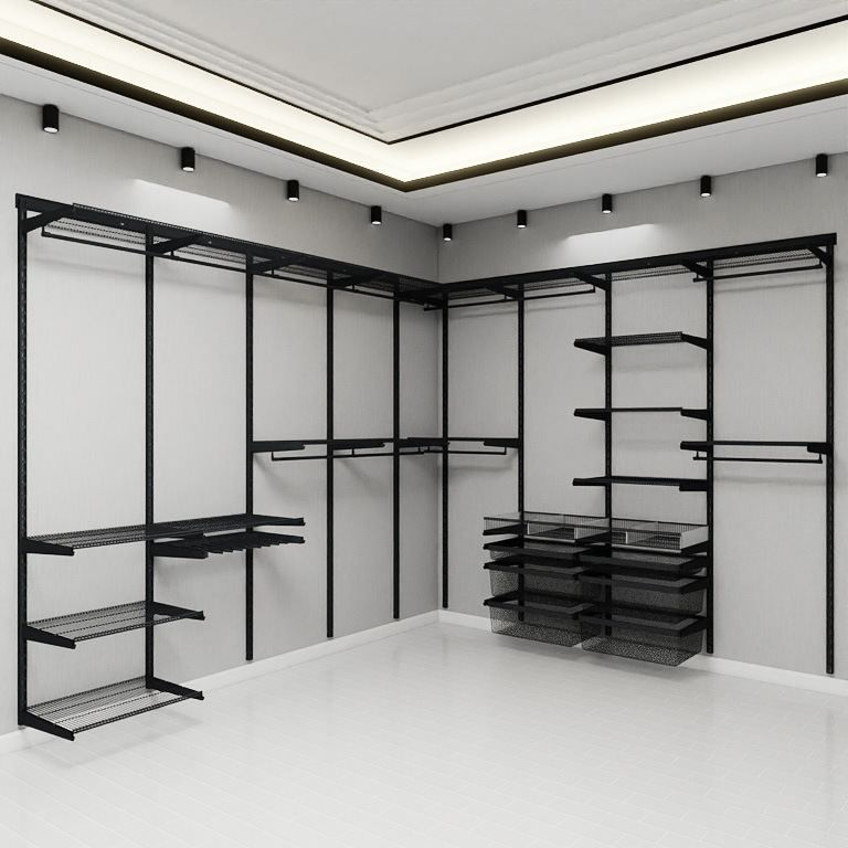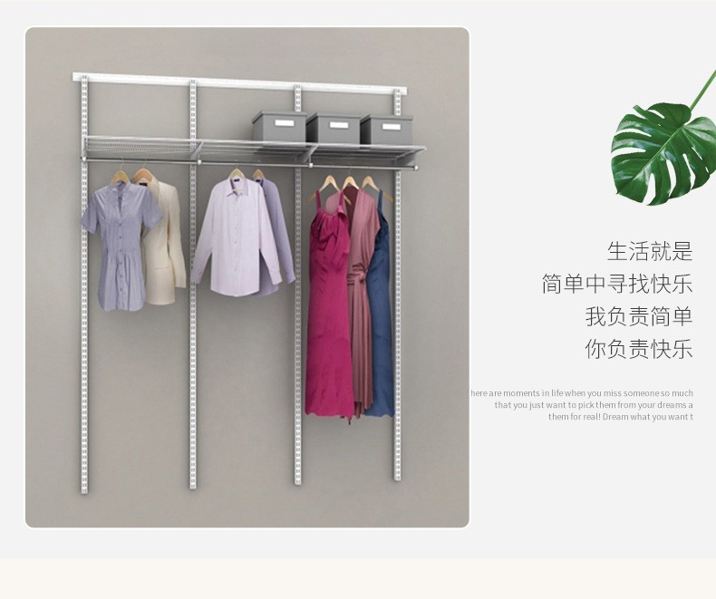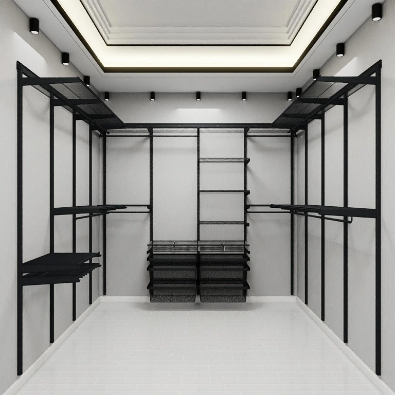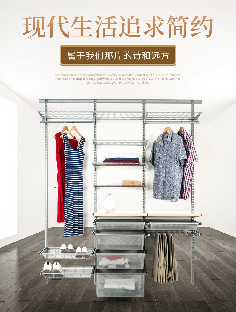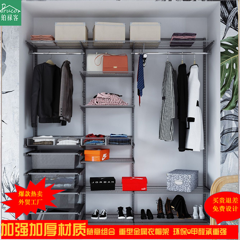 Платиновый металлический шкаф с усиленными горизонтальными перекладинами, металлическая вешалка для одежды в спальню, металлическая гардеробная.