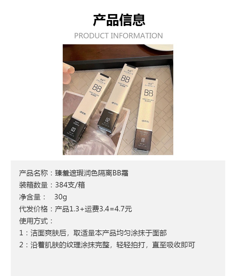 Изоляция BB-крем (естественный цвет); Ухудшение позора Изоляция BB крем (слоновая кость); Zhen стыдный крем для изоляции BB (светлая фиолетовая); Стыдно, черный золотой крем для кожи; Стыдно, черное золото, тональный крем для кожи, слоновая кость; Жень астаксантиновой основы (натуральный цвет); Жень астаксантиновая основа (слоновая кость)