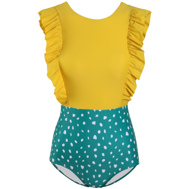 Семейный купальник, цельный купальник с треугольными оборками для девочек маленького и среднего размера, милый стиль для мамы и дочки.