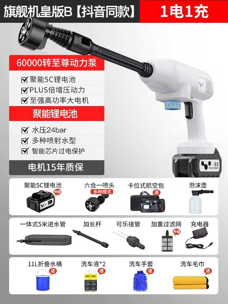 无线洗车机车用家用便携充电式高压水枪大功率锂电池水泵清洗神器
