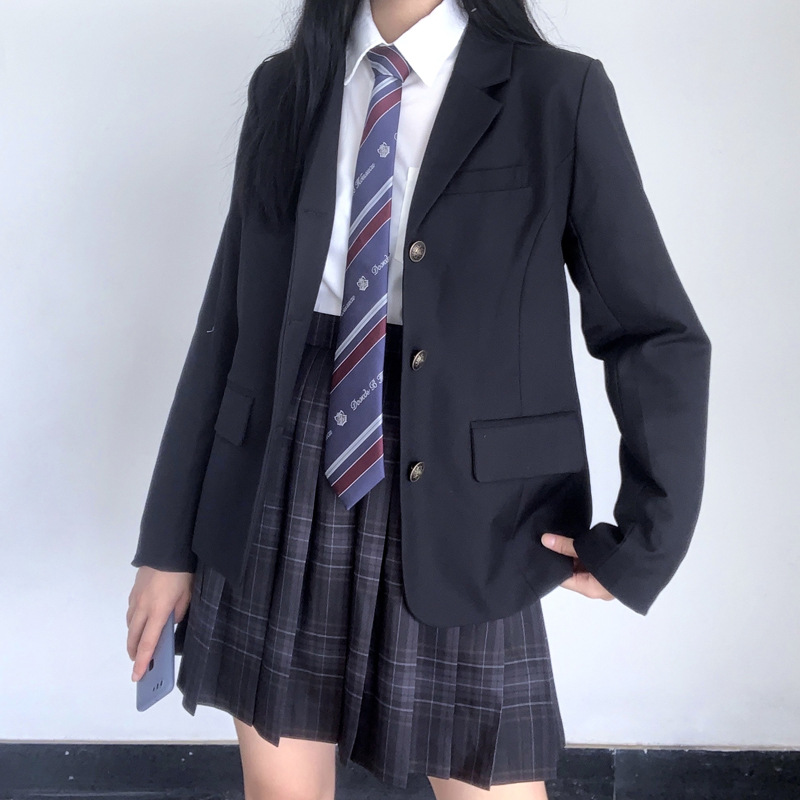 Черный длинный костюм на 3 пуговицы + мешок для пыли + вешалка; Синий длинный костюм на 3 пуговицы + мешок для пыли + вешалка; Серый длинный костюм на 3 пуговицы + мешок для пыли + вешалка; Топ с угольно-серой клетчатой юбкой + галстук-боксер; Свободная рубашка с короткими рукавами + угольно-серая клетчатая юбка + галстук-боксер [галстук в комплект не входит]; Свободная рубашка с длинными рукавами + угольно-серая клетчатая юбка + галстук-боксер [галстук в комплект не входит]