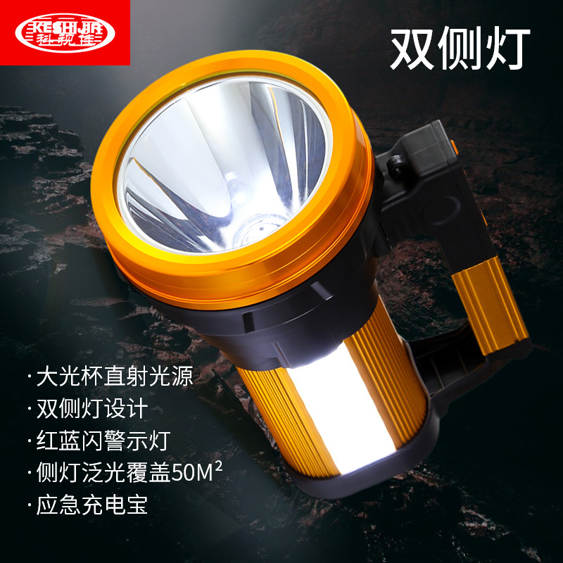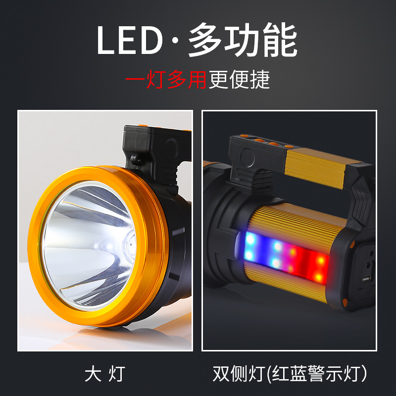 (科锐激光炮灯芯7A/18000mAh九锂电/照明时间12-48小时/6000LM)+充电宝升压功能+白光侧灯及红蓝闪警示功能(双侧灯+电量显示功能【新增】)