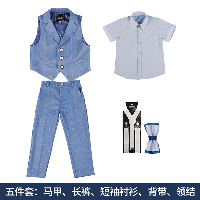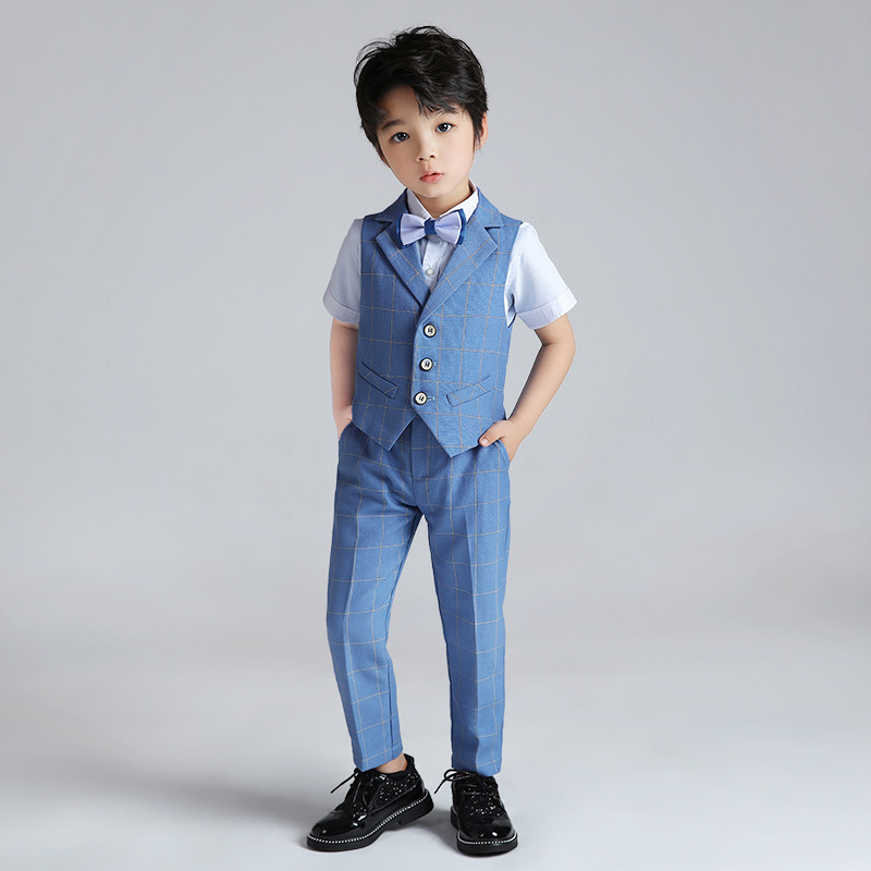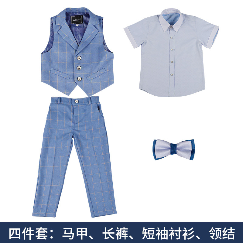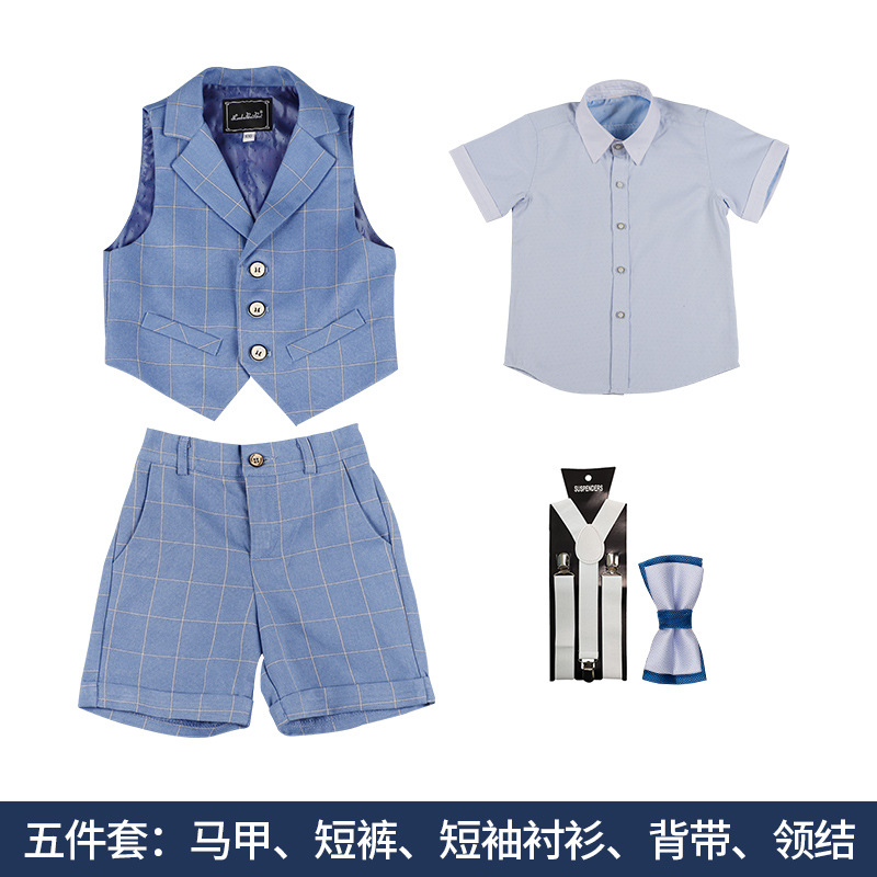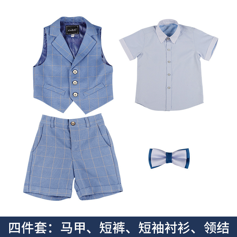 Костюм-жилет для мальчиков, Летний Новый костюм с короткими рукавами, комплект из трех предметов, детское речевое платье для девочки-цветочницы в возрасте одного года