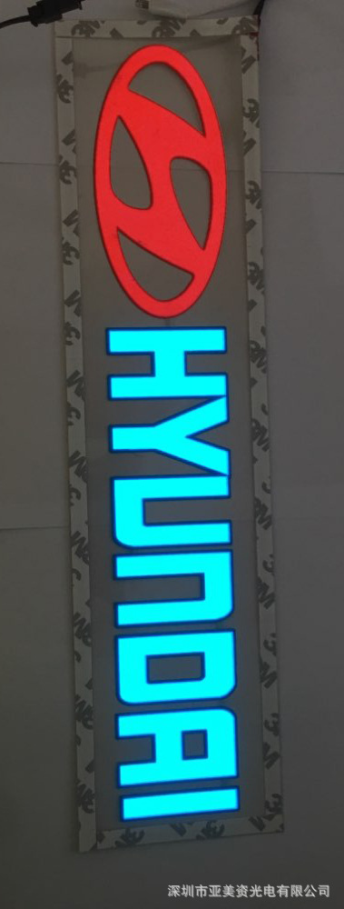 6、 车贴厚度:冷光车贴属于平面光源,厚度0.2-0.3毫米左右,与名片厚度差不多。