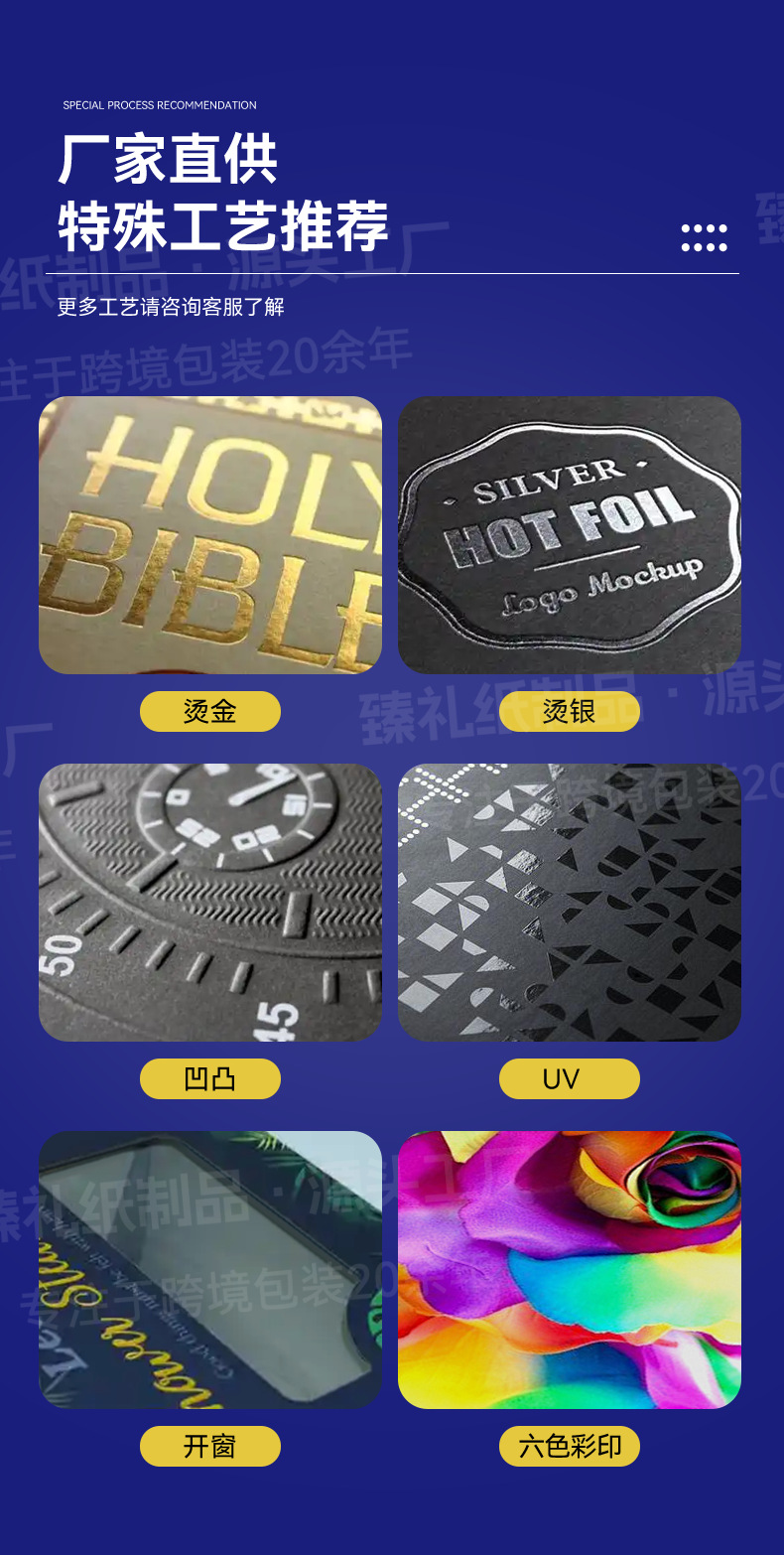 Смещение; Трафаретная печать; Тиснение; УФ печать; Глубокий; Бронзирование (Серебро); Другие