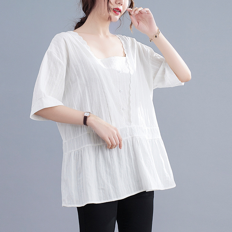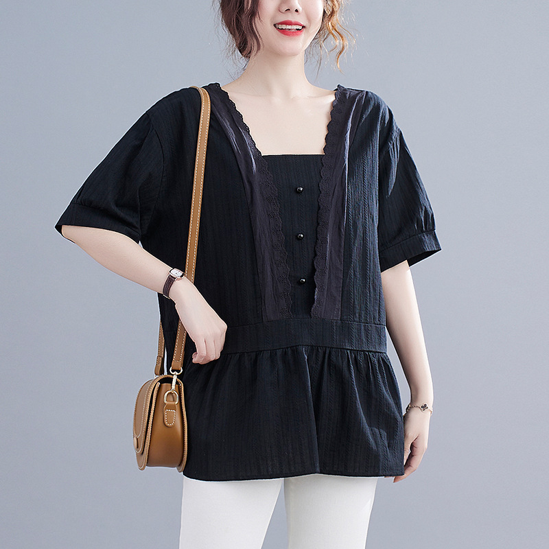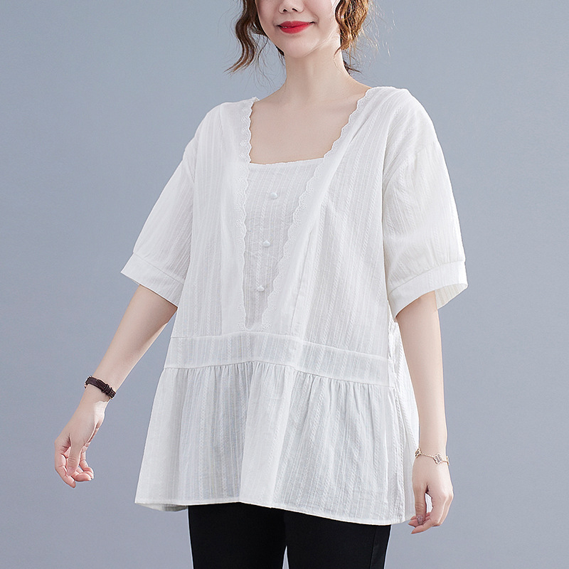 Агент по закупкам за рубежом одежды больших размеров: Женская одежда больших размеров Fat 200/ 150kg (размеры до 200/160 см), летние жаккардовые топы с коротким рукавом в корейском стиле для полных женщин.