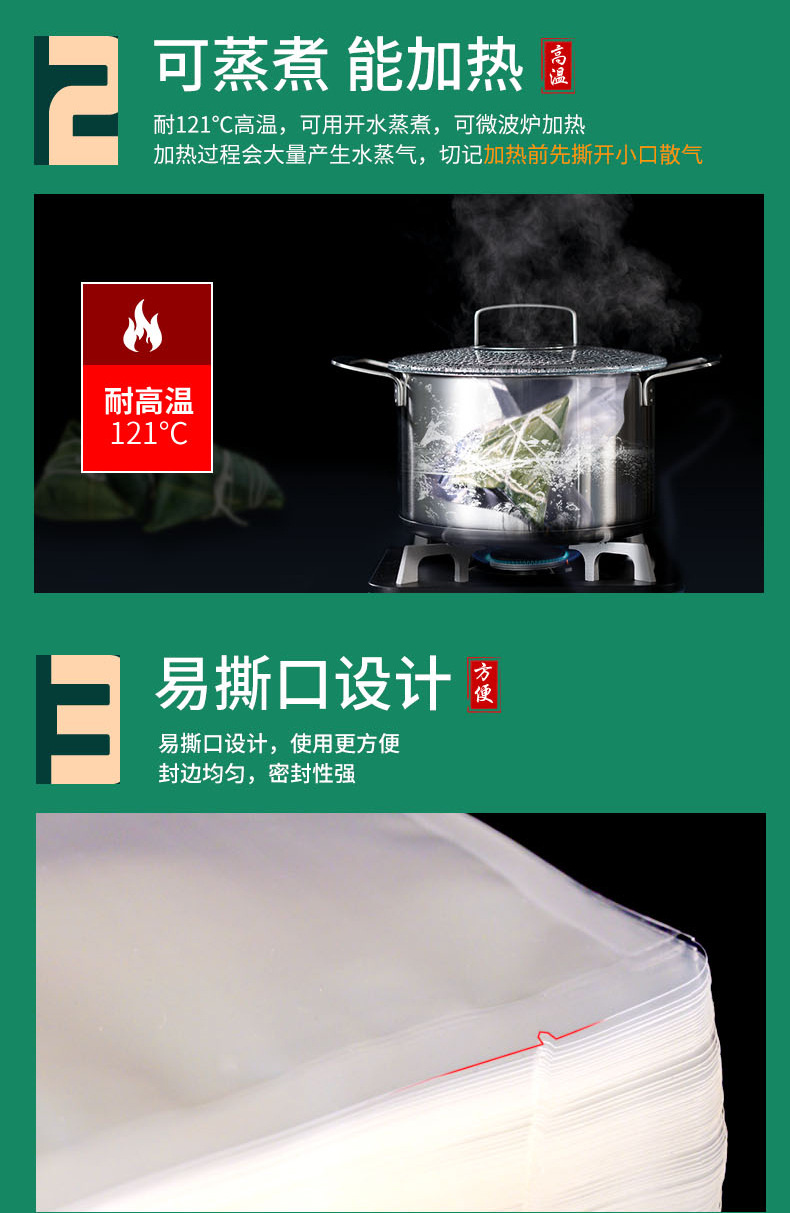 Высокая температура со-штранг-прессования нейлона сумки еды сумки Зонгзи ровная прозрачная Толстая коммерчески Варя товары соуса сумки упаковки вакуума