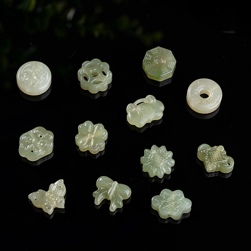 Натуральный нефрит Hetian нефрит белый нефрит дымчатый зеленый нефрит четырехлистный клевер Багуа Кирин обратно облако вышитые бисером ювелирные изделия DIY аксессуары