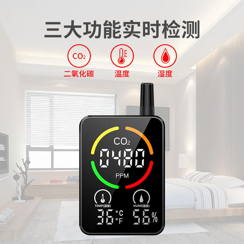 实时监测和实时显示每立方米的二氧化碳浓度。