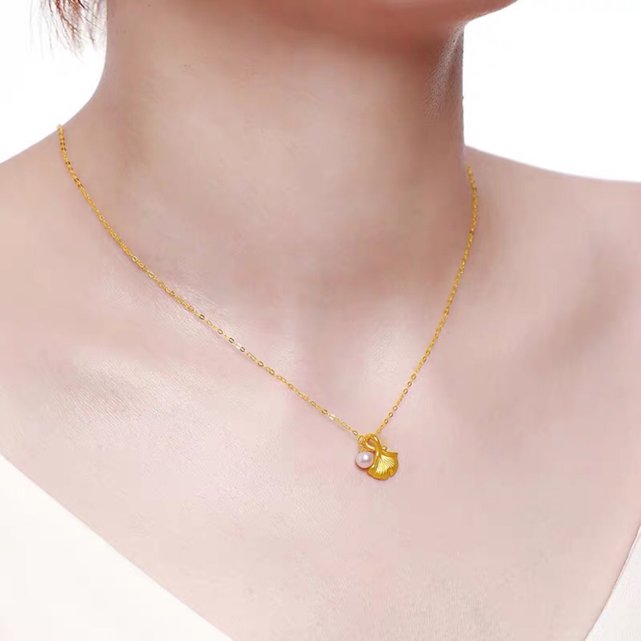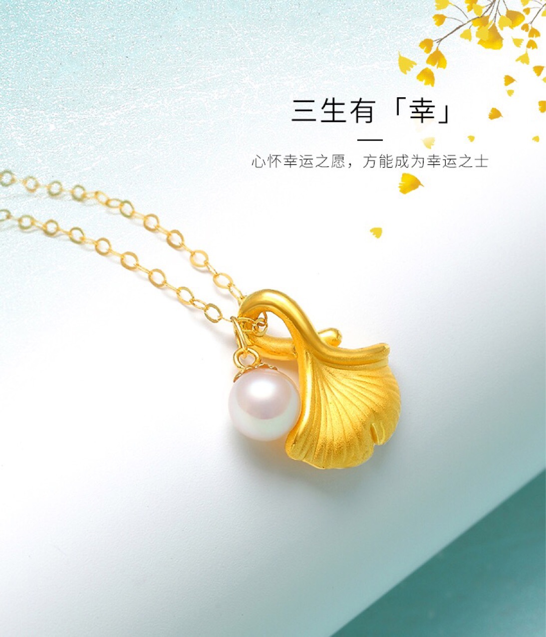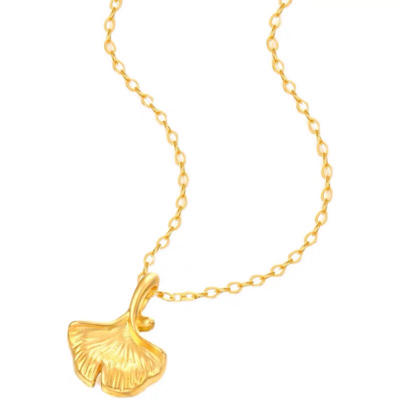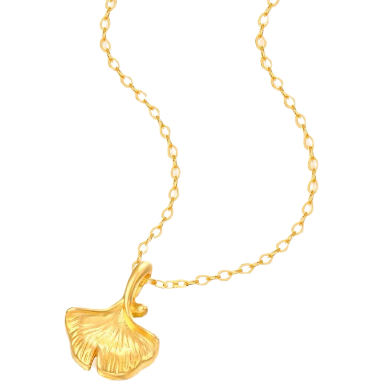 Гинкго билоба стопы золотой кулон женский 3D твердое золото