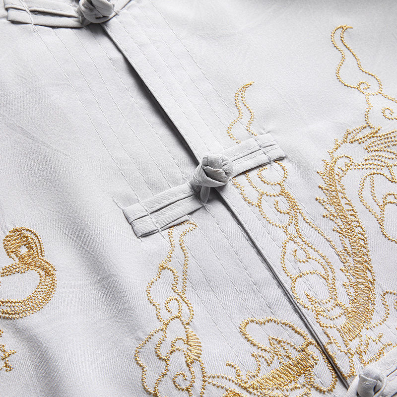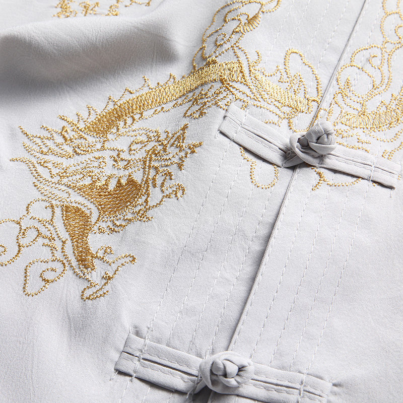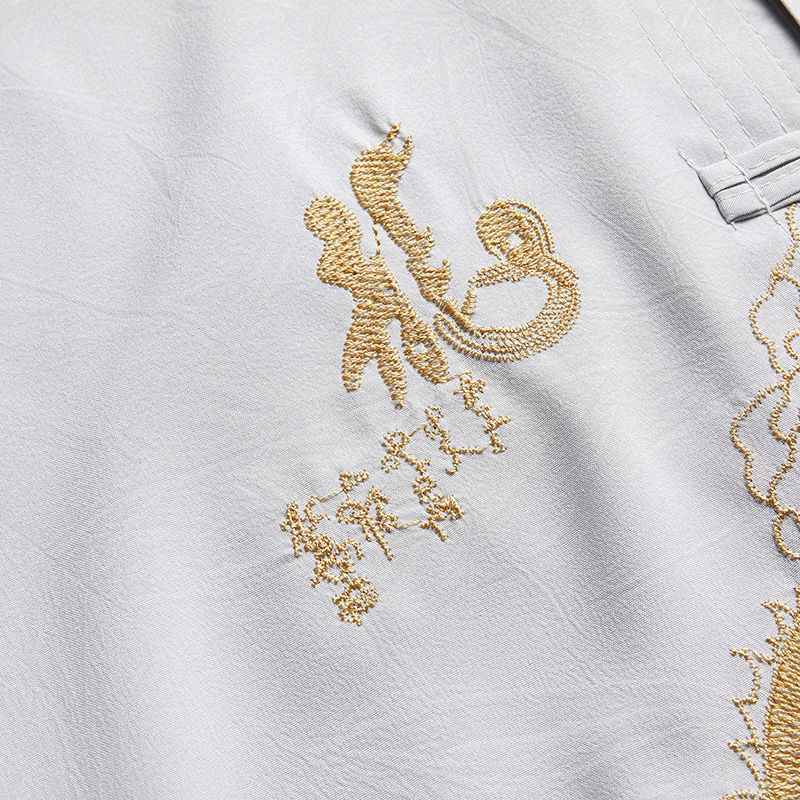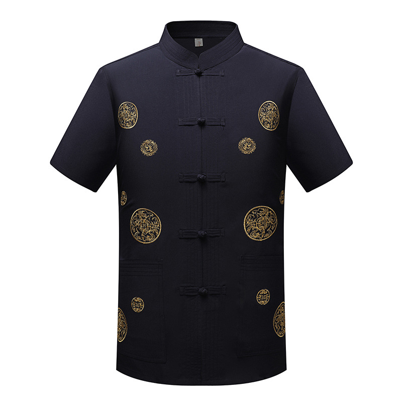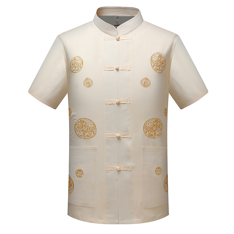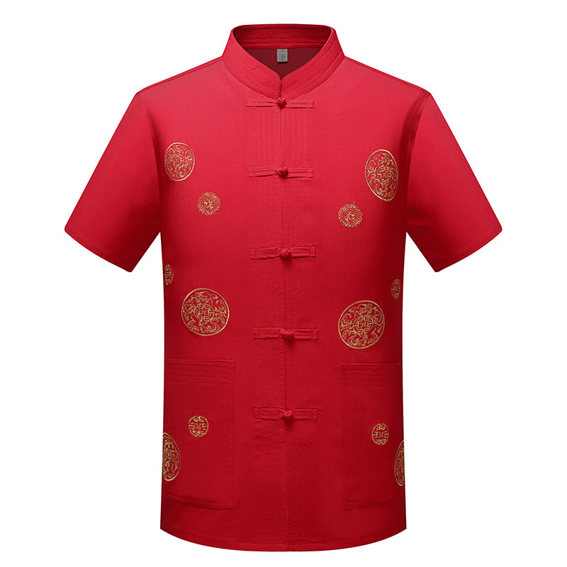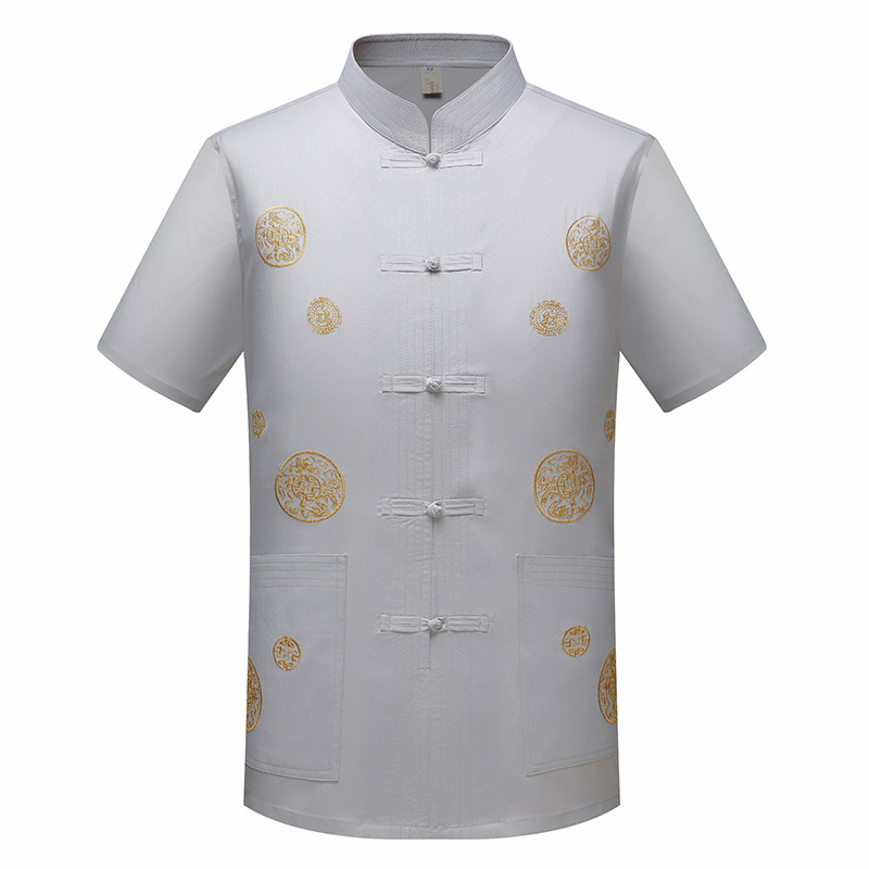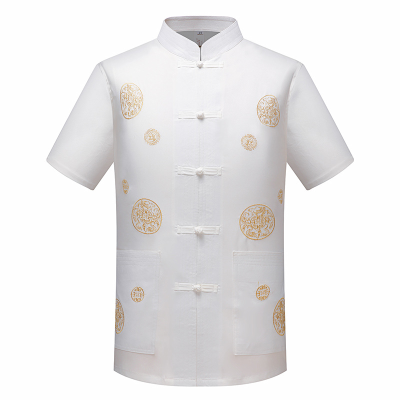 Летний костюм Тан с короткими рукавами и пряжкой для среднего и пожилого возраста, мужская рубашка, вышивка отца, утренний спортивный костюм National Wind, костюм дедушки, ханьфу