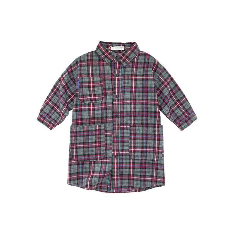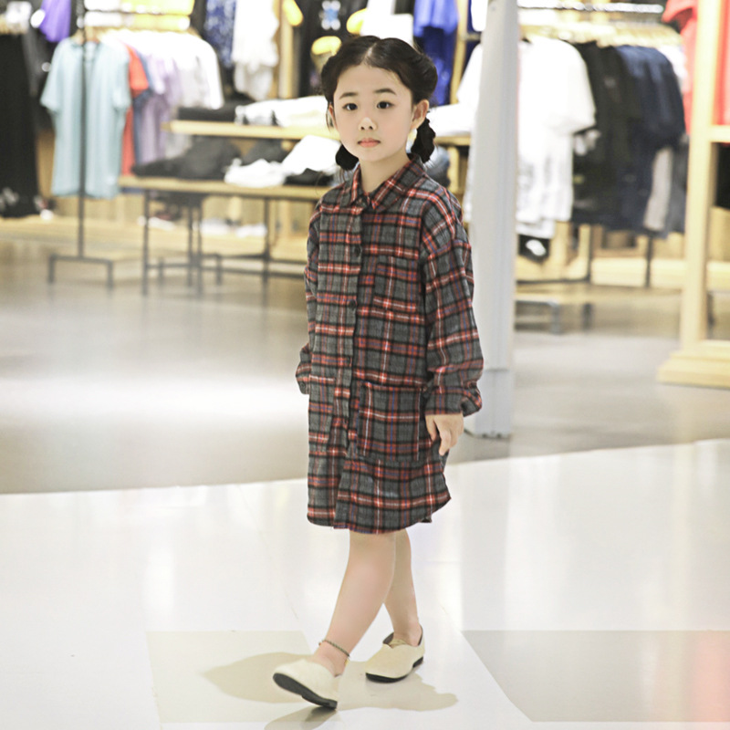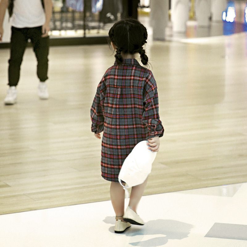 Рубашка для девочек, темно-красное клетчатое платье-рубашка в британском стиле, длинное свободное простое платье-рубашка в клетку
