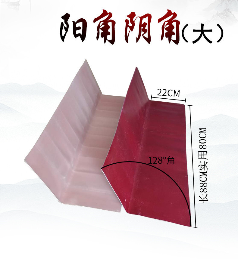 临沂市兰山区吉源建材厂是合成树脂瓦主瓦、正脊瓦、斜脊瓦、波浪檐口、滴水檐、堵头、三通、四通、阳角、阴角、翘角、左右封山、葫芦、双龙戏珠,840型合成树脂瓦、脊瓦、紧固件,pvc合成树脂瓦,脊瓦等产品专业生产加工的公司,拥有完整、科学的质量管理体系。临沂市兰山区吉源建材厂的诚信、实力和产品质量获得业界的认可。欢迎各界朋友莅临参观、指导和业务洽谈。