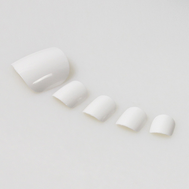 根据正常人体脚趾甲表面的自然弧度,渐变式甲片厚度而设计的假指甲贴片,以令其更好的贴合真甲,提升自然度。