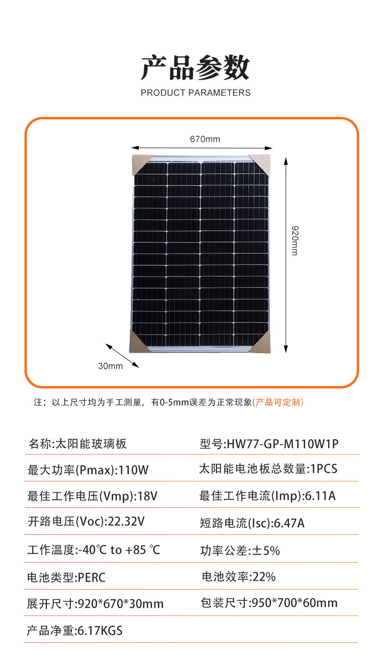 Солнечная панель 110 Вт, фотоэлектрическая панель, модуль для выработки электроэнергии, из закаленного стекла