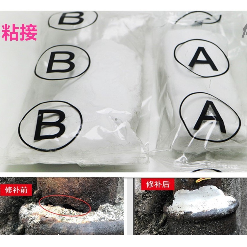 塑钢泥他是双组份的胶泥状,揉捏均匀后同橡皮泥一样的,然后直接按压在需要修复的部位就可以了,15℃以上24小时左右完全固化,固化后硬如钢铁,强度大、密封好。