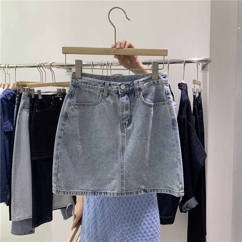 Джинсовая юбка для женщин, с высокой талией, для миниатюрных фигур, универсальная юбка А-силуэта, новая модель лета 2025 года, стройнящая, облегающая бедра, трендовая на Instagram.