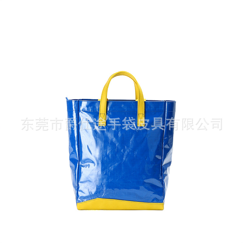 Европейская и американская модная тканая сумка для покупок из полиэтилена, экологически чистая и модная сумка через плечо из ПВХ, синяя водонепроницаемая тканая сумка-тоут