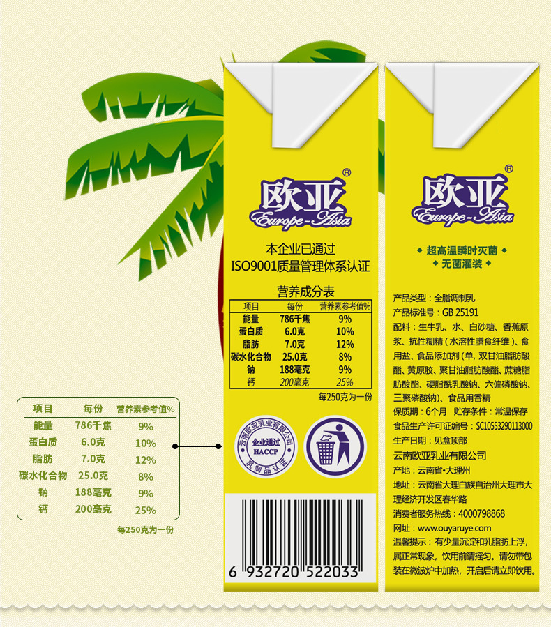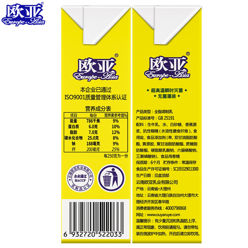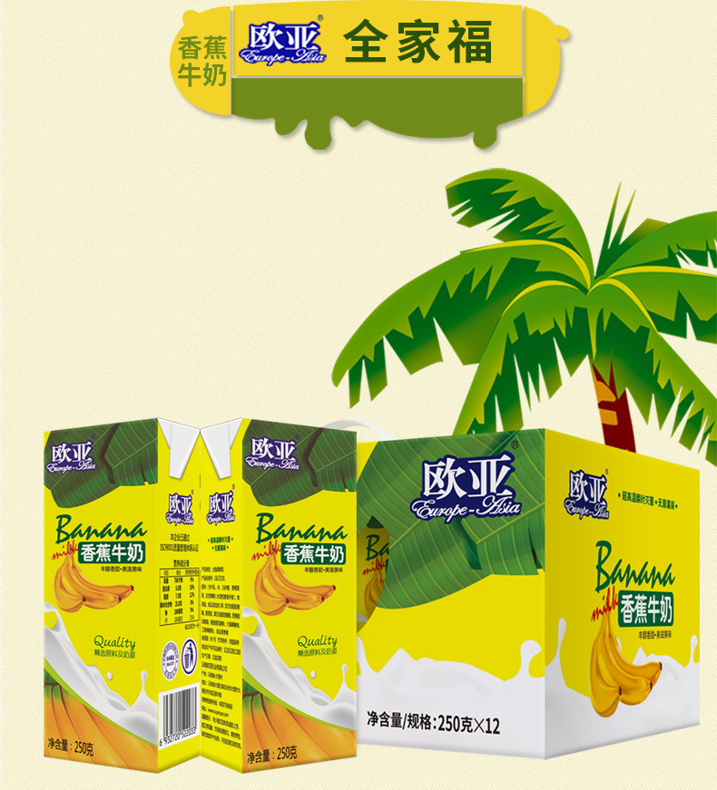 [Финик фреш] Евро-Азия банановое молоко 250 г * 12 коробок Подарочная коробка завтрак полная коробка молочных продуктов