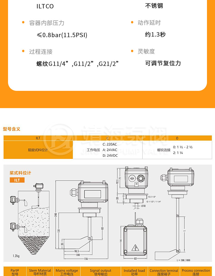 Датчик уровня материала Xinghai 220В/24В для резервуаров, ротационный, для цементных смесительных станций, ILTCO