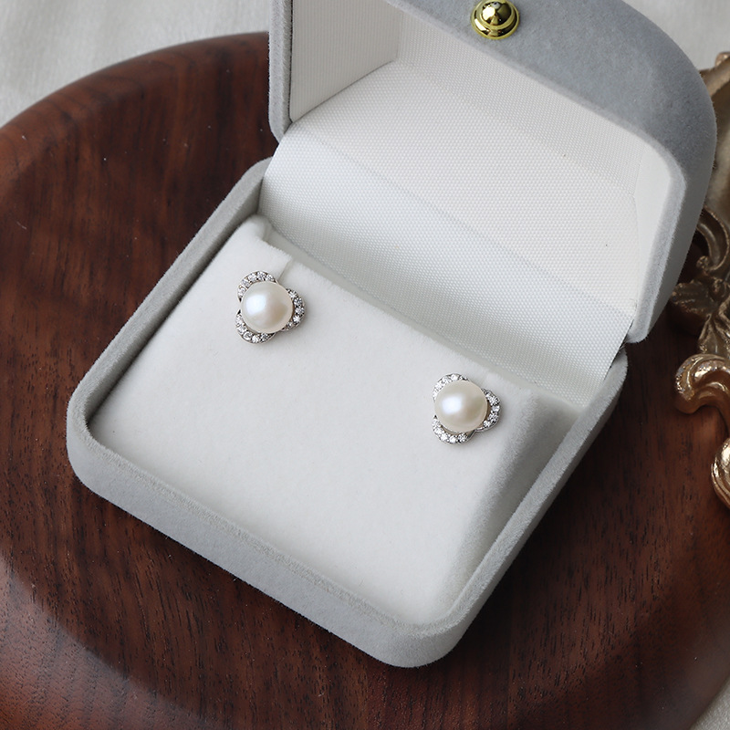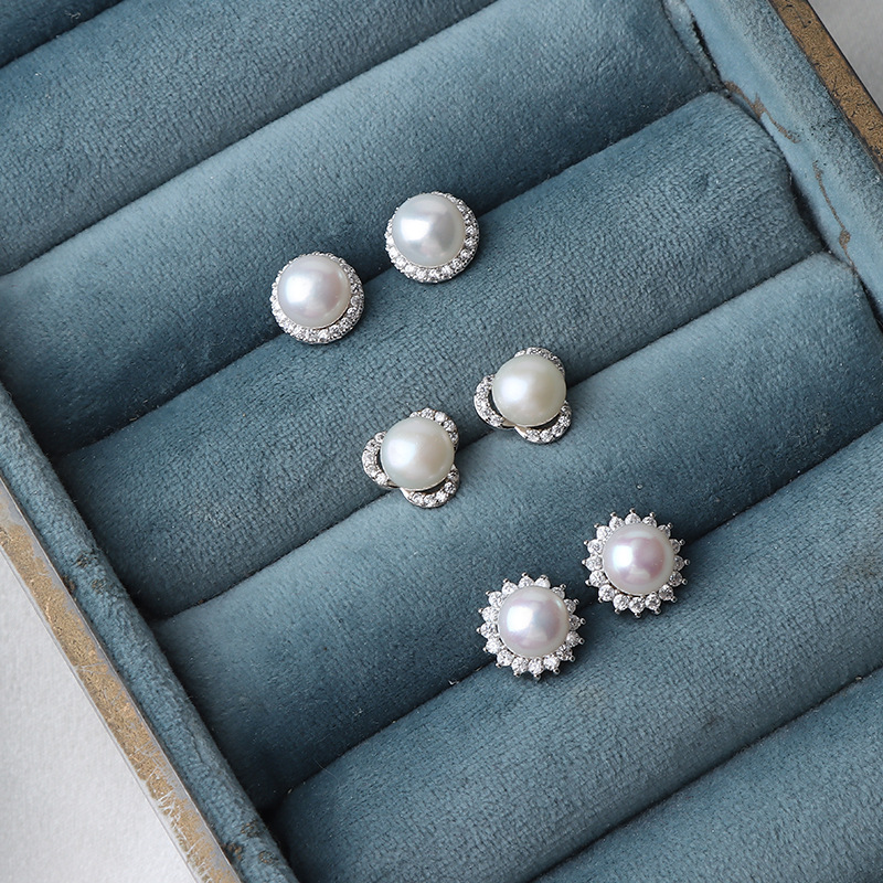 S925 стерлингового серебра иглы натуральный пресноводный жемчуг серьги с бриллиантом простой классический все матч серьги завод в наличии оптом