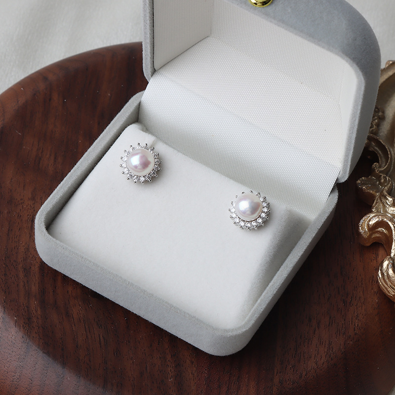 珍珠直径约7mm,925纯银耳针