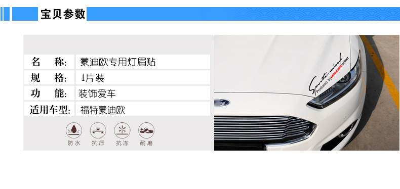 Подходит для новой лампы Mondeo наклейка для бровей Автомобильная Наклейка на фары Спортивная модификация украшение цветок модификация Mondeo
