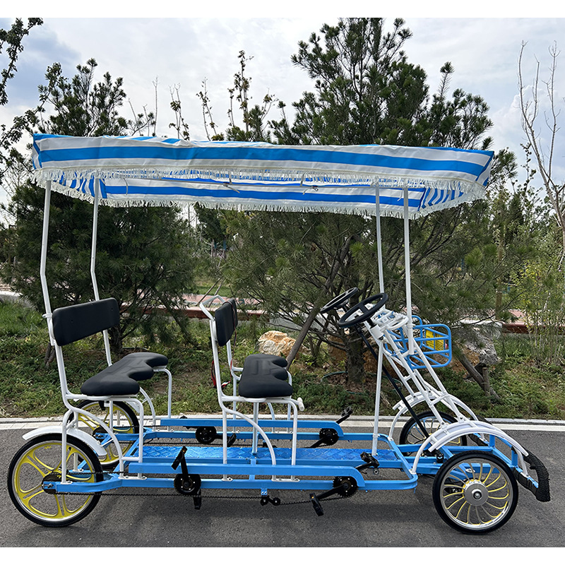 Четырехместный тандемный велосипед, многоместный прогулочный транспорт для осмотра достопримечательностей, четырехместный четырехколесный транспорт для парного отдыха в парке