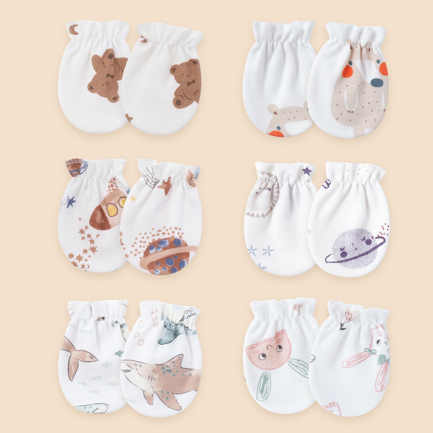 Весенние, летние, осенние и зимние детские маленькие перчатки с защитой от царапин на лице, однотонные перчатки для новорожденных, Детские эластичные перчатки От 0 до 1 года